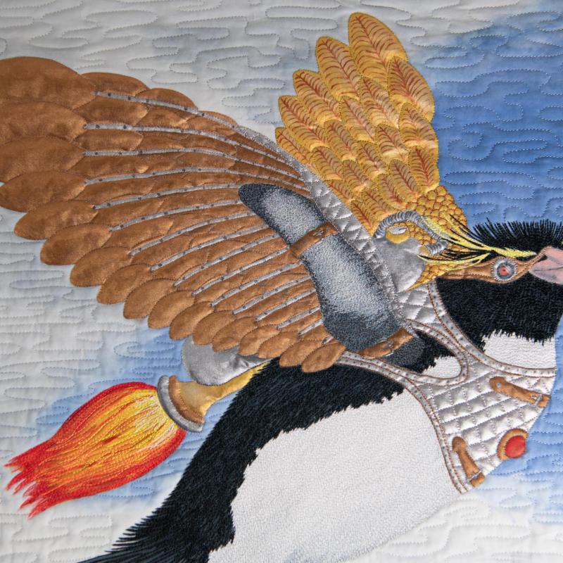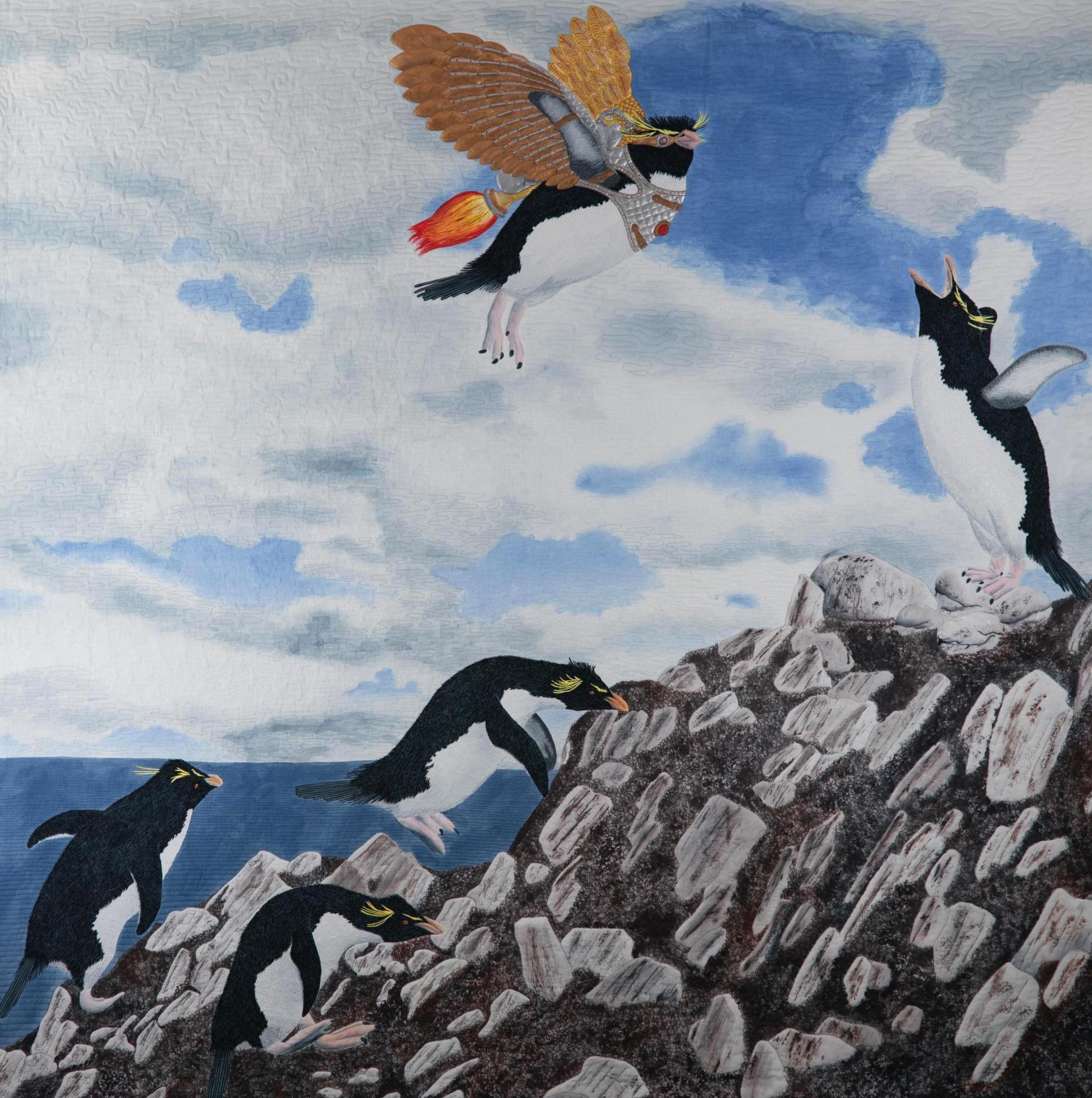 During a visit to the Falkland Islands, we saw the intrepid rockhopper penguins hopping all the way up the cliff from the sea to their nests. A playful voice in my head thought the job might be a little easier with a jetpack. The flying penguin thinks it's a treat, but one penguin clearly disapproves!