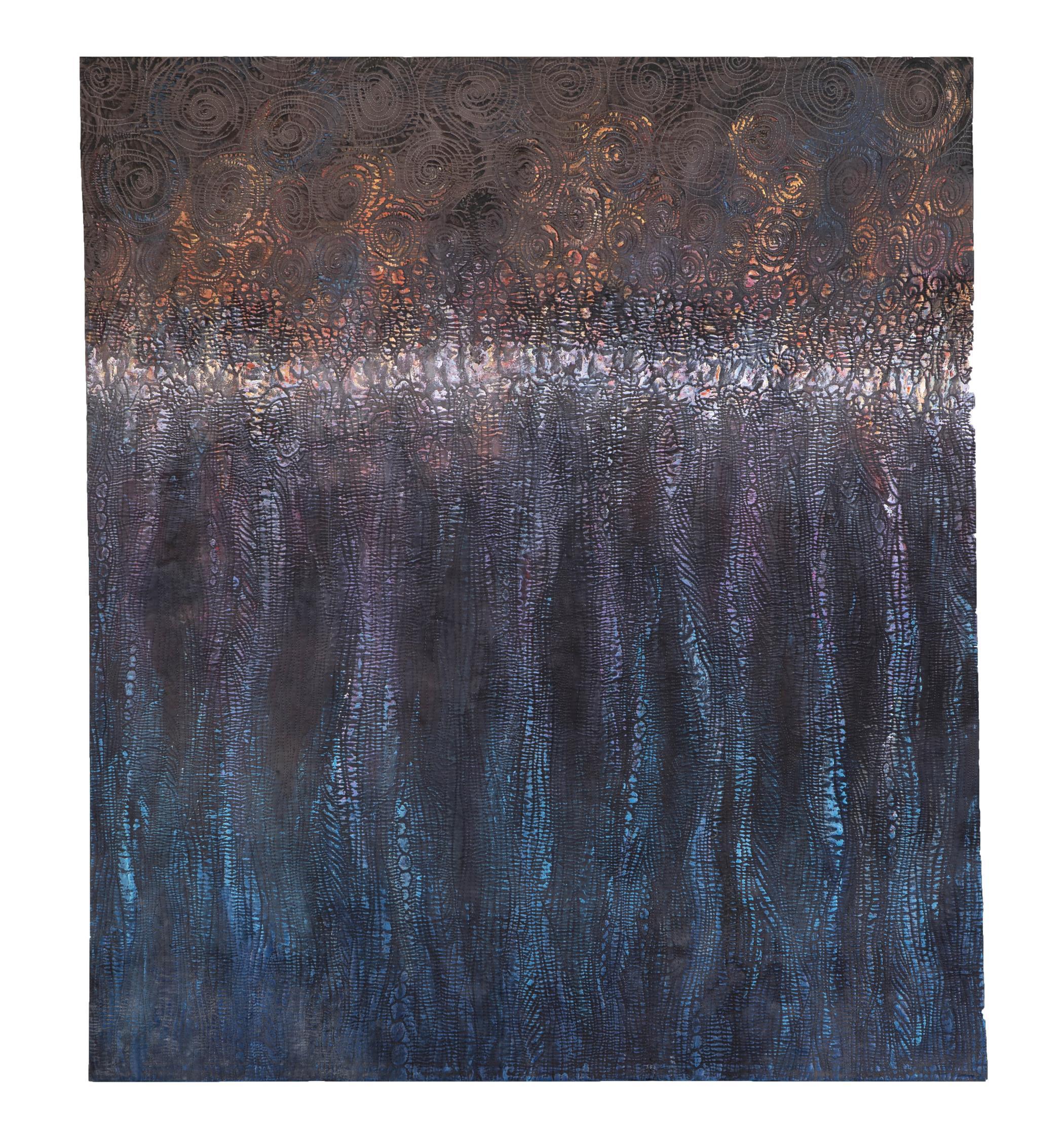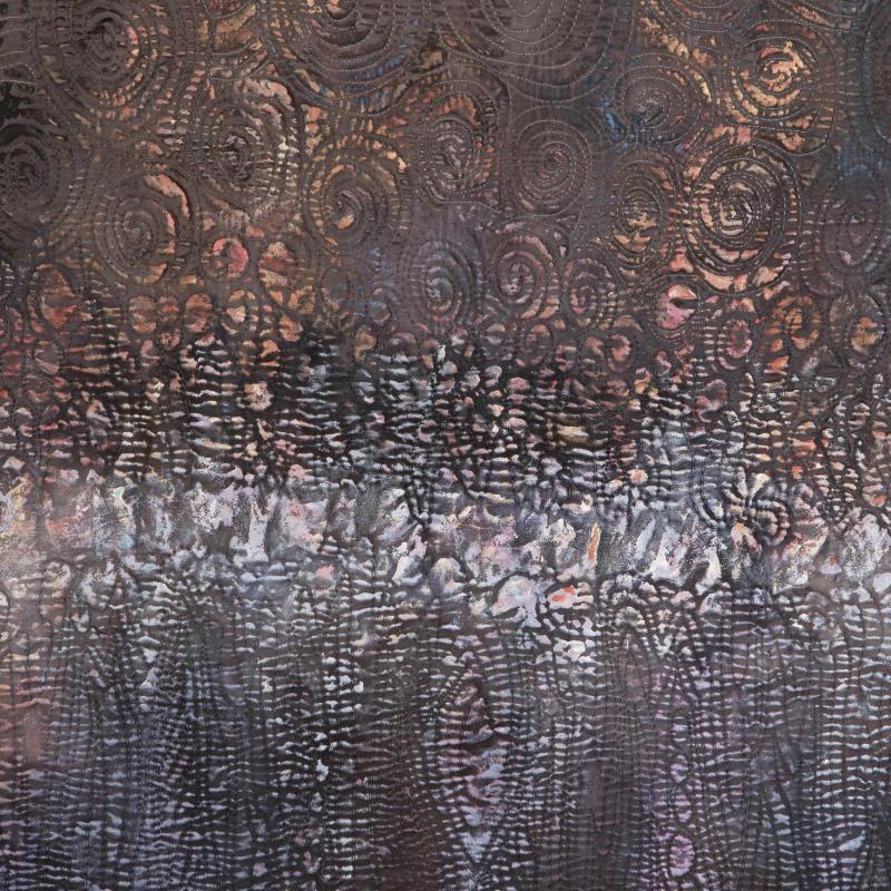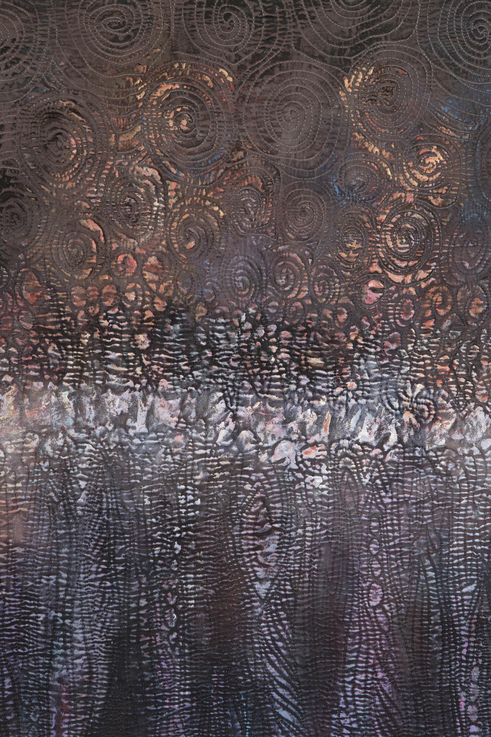 Rocking and Rolling is primarily about texture, form, and color, stitched to impart a unique texture which is enhanced through the layers of paint. The abstract composition was created with an interesting and atmospheric division of space, giving viewers enough room to see what they desire to see.