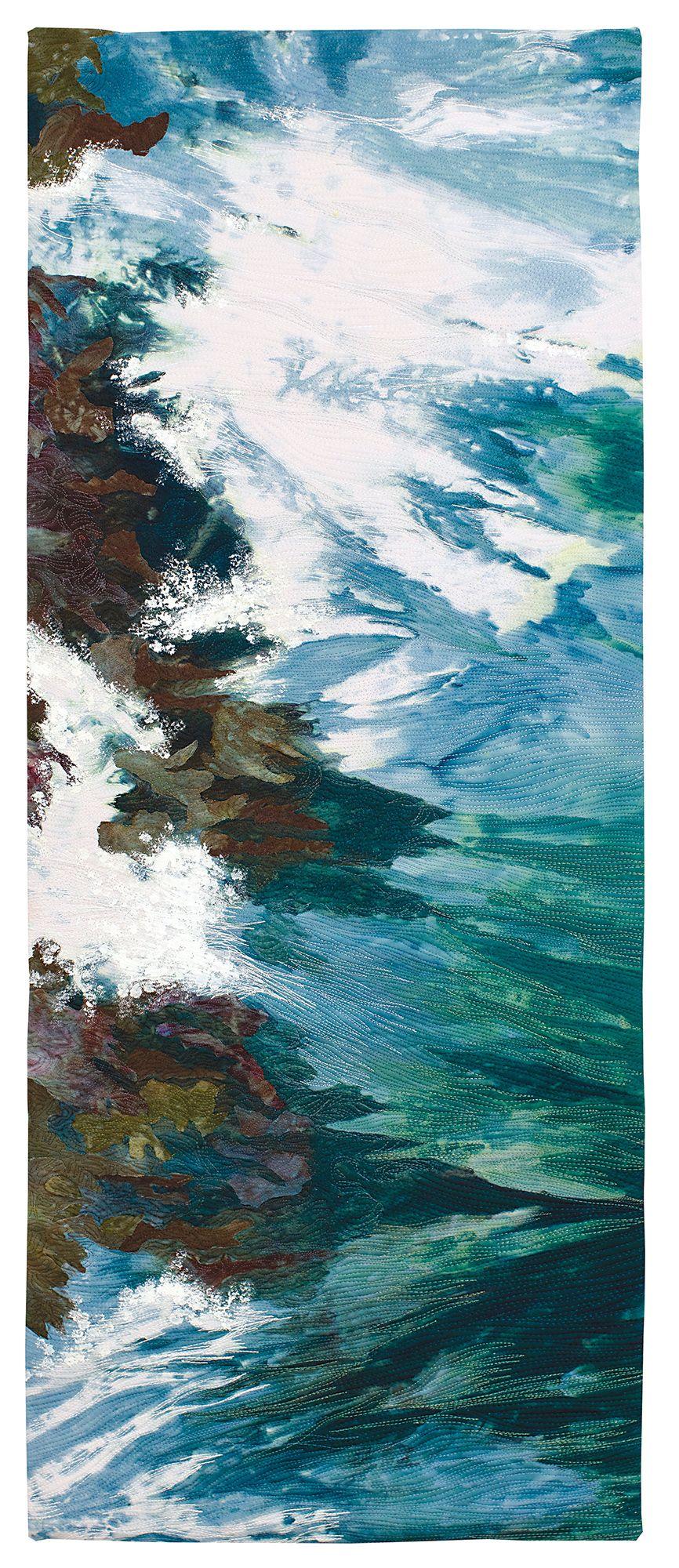 Hand-dyed fabric, ink, wax pastel, colored pencil, acrylic paint