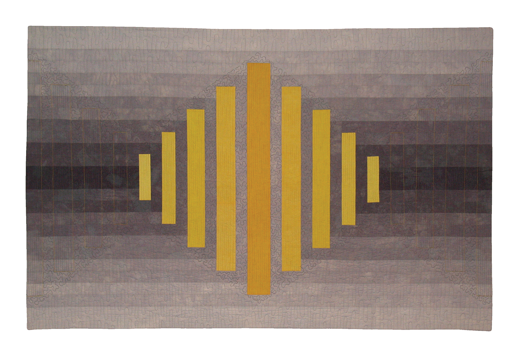 Browse the Collection Sforzando Lynne Harrill Size 39 in x 59 in (99 cm x 150 cm) Year 2018 Gallery Yellow (SAQA Seminar 2021: Unit 3) Related Publications Art Quilt Quarterly - #20 Price $0.00 Buy Now >> In music, sforzando is an indication to make a strong, sudden accent on a note or chord. This my visual interpretation of that concept. Materials 100% cotton Techniques Hand dyed cotton, machine pieced, machine quilted