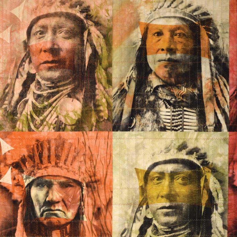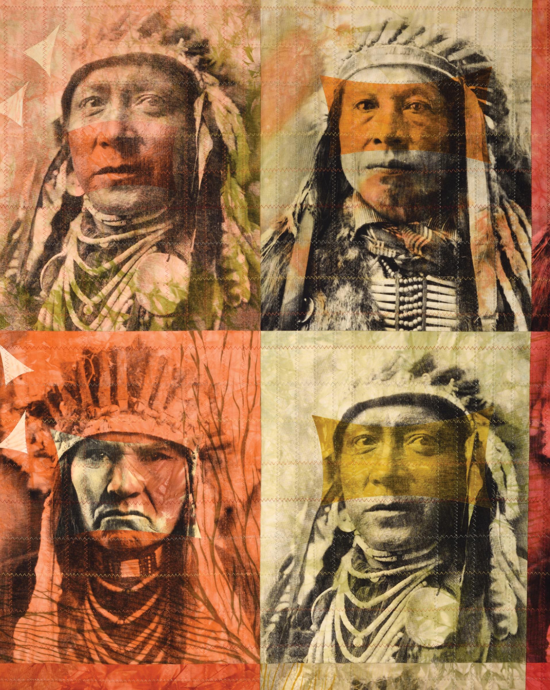 Screen printed, hand dyed, fused appliqué, machine pieced and quilted