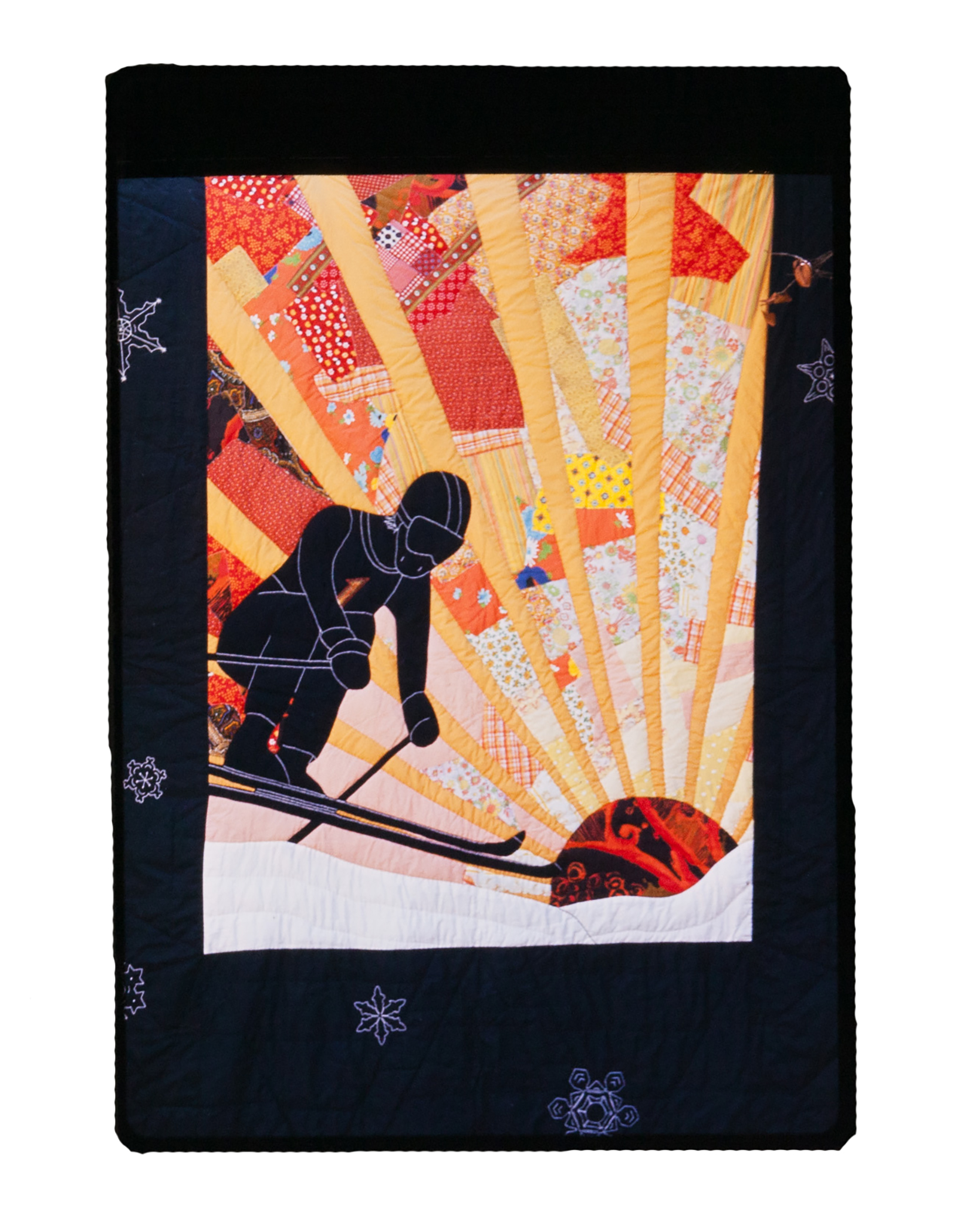 I was in high school when I made this quilt, my very first. I learned sewing skills from my mom. She was a creative, "outside the box" person, which is probably why it never occurred to me that it might be easier to start with a small, traditional quilt pattern! My high school sweetheart was a ski racer and my intention was to give him this quilt, which I never did.