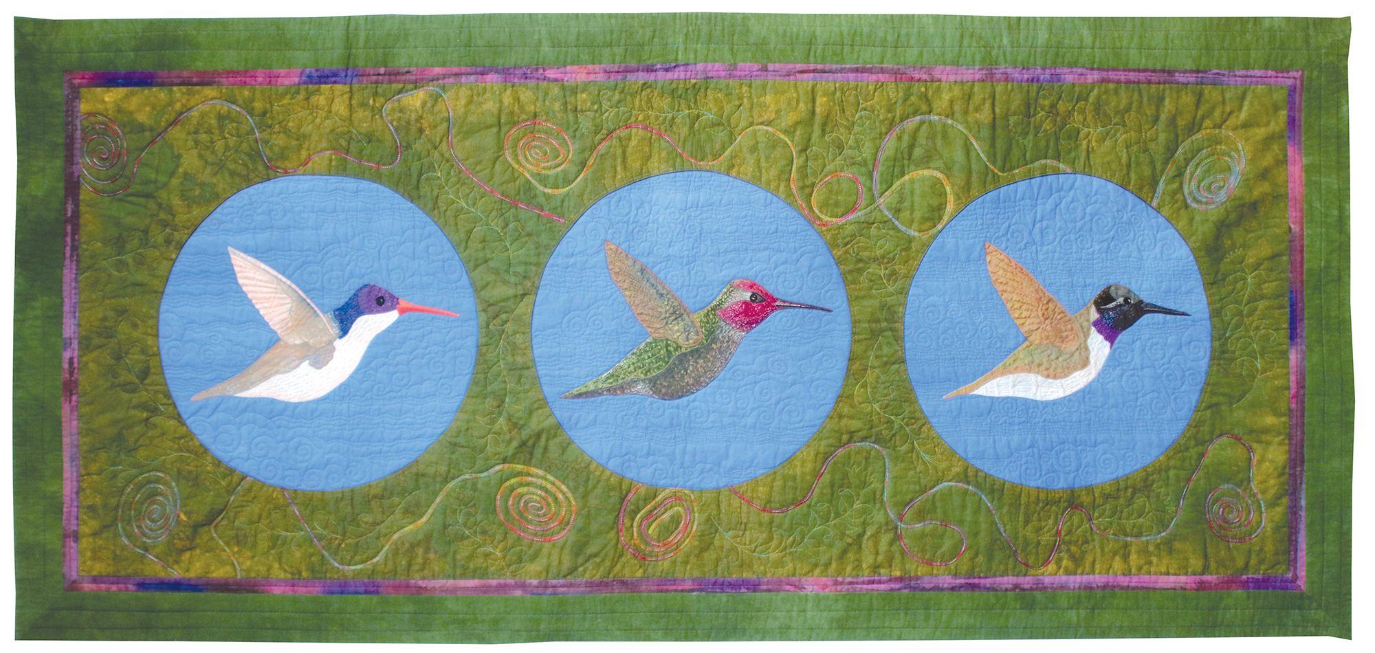 Raw edge and reverse appliquéd, free motion quilted, thread painted, hand painted, hand dyed