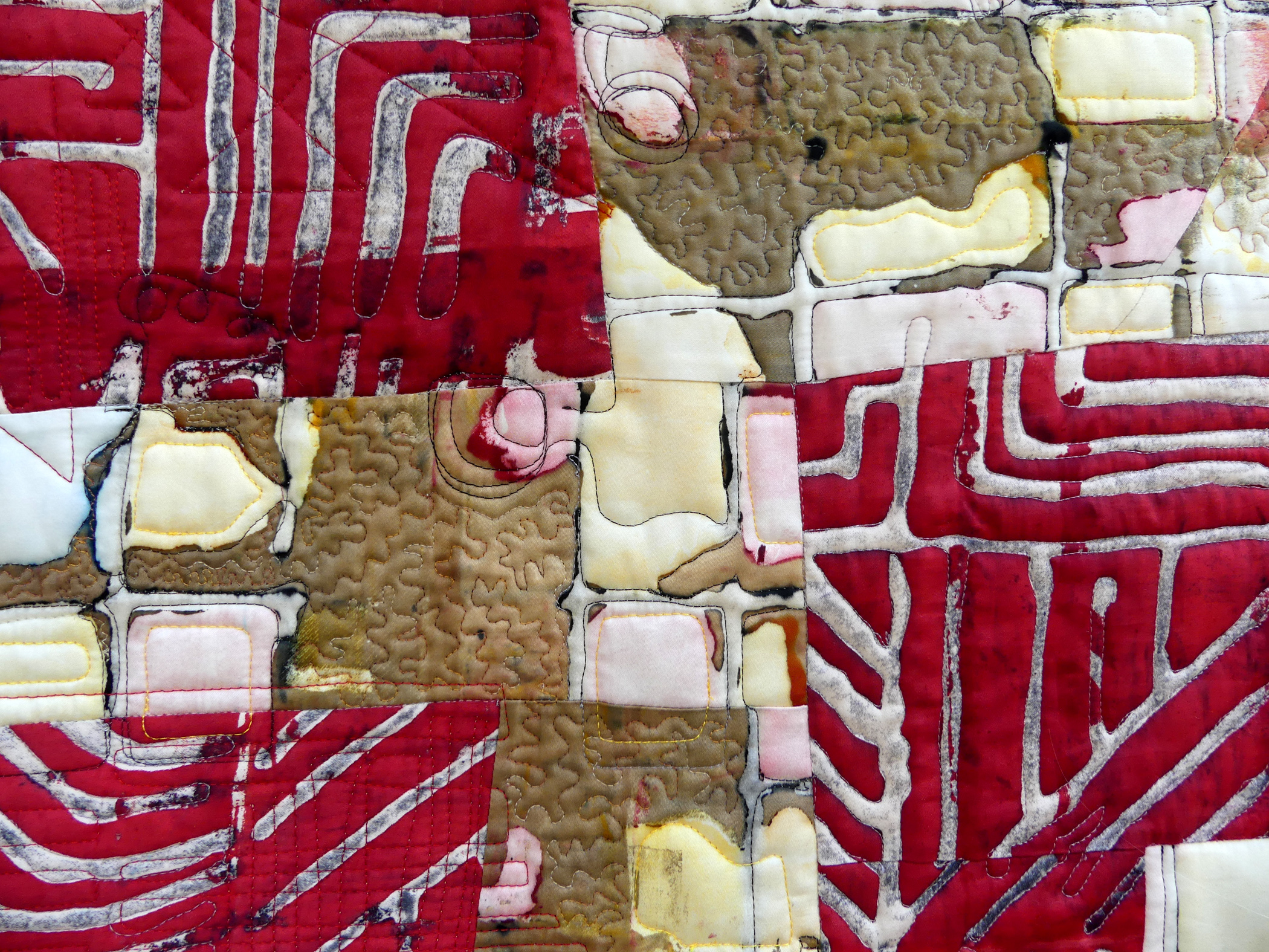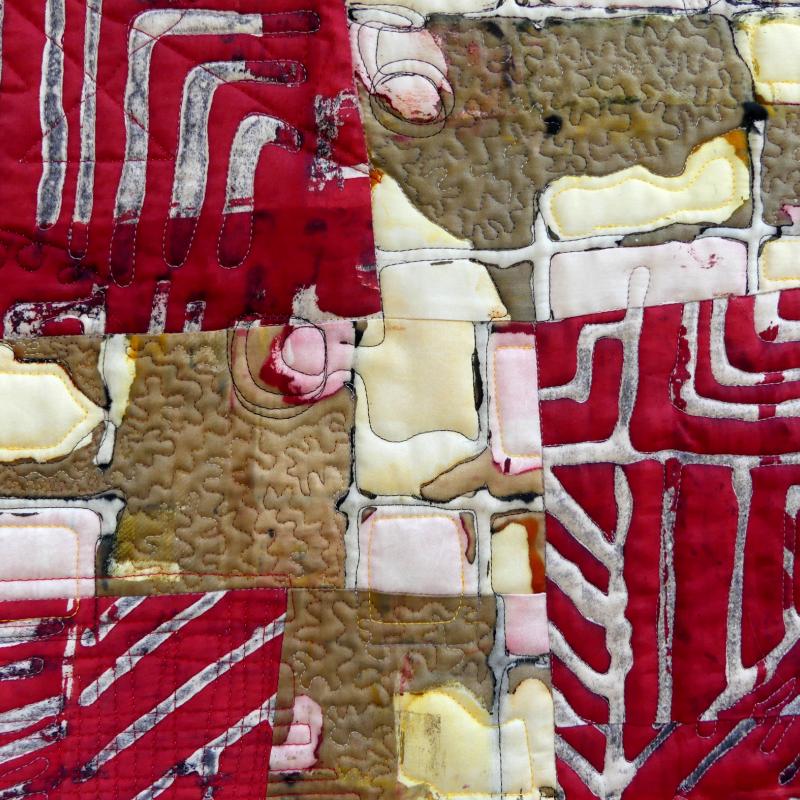 The quilt name, "Small Talk“, is based on how I feel about people talking when the come together, talking about one common theme and finally feeling different conclusions. Once you get into a conversation you'll bring your own culture, expressions, and personal experience with you. And, at last, small talk follows unsaid rules: the strongest voice, the smart answer, the quiet people, and those who will never stop to speak or are just nodding. I sew all this structures in my quilt. Forms and patterns answering.