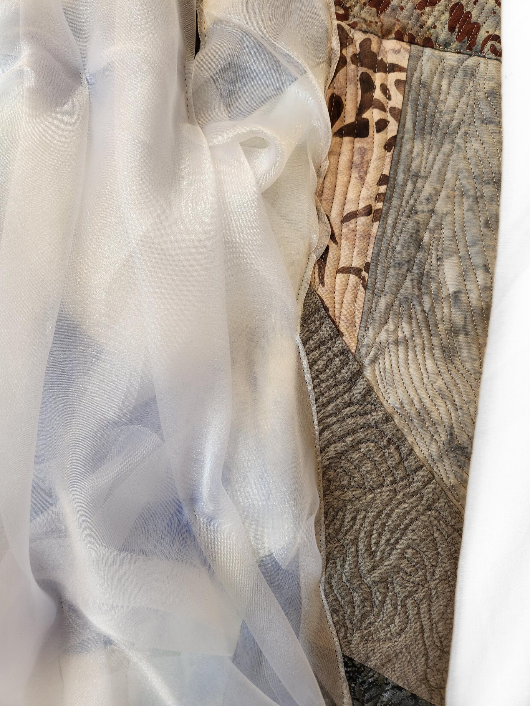 Cotton fabric, polyester thread, organza, Angelina fiber, acrylic paint