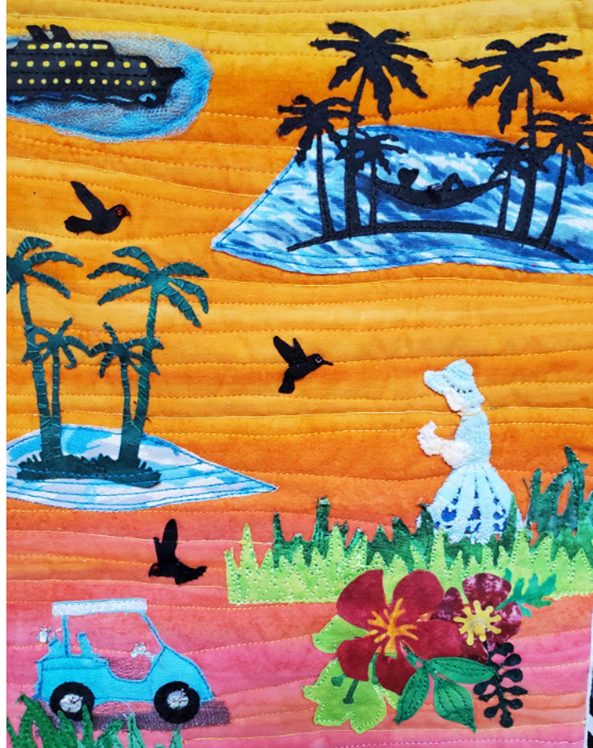 Machine applique, hand applique, machine quilting, designed on the computer and some images cut with an electronic cutter