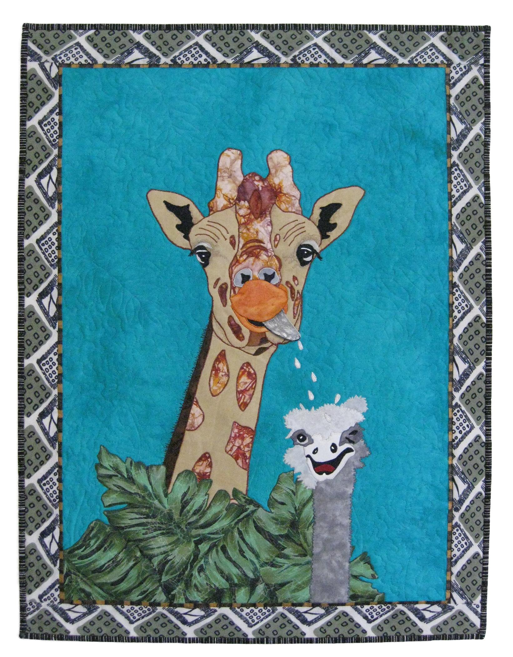 Layered applique, satin stitched and thread painted with hand painted accents; machine quilted.