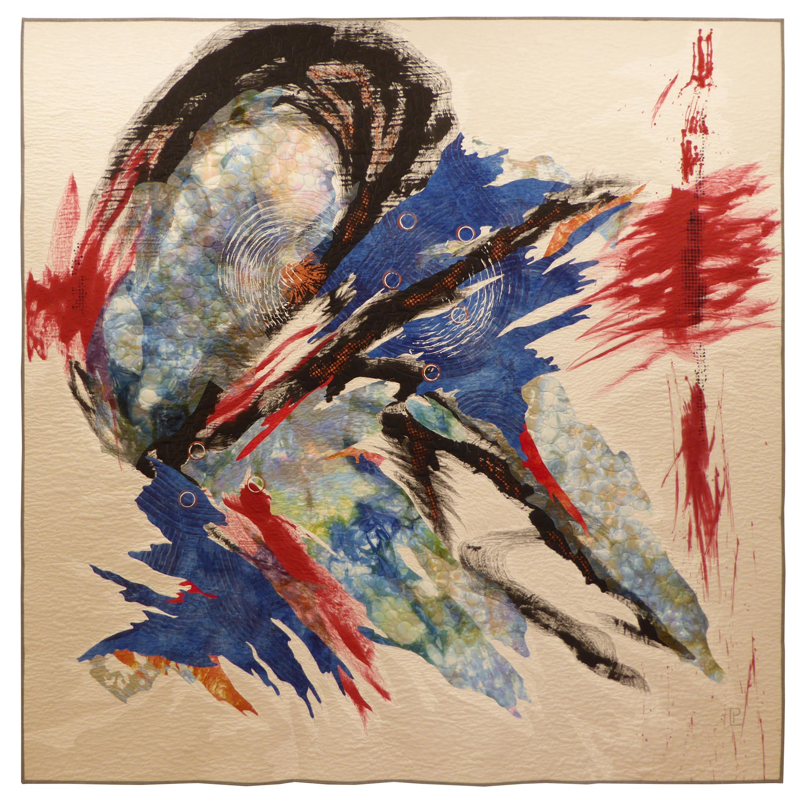 Collaged, hand dyed, painted, mono printed, stamped, stenciled, machine stitched