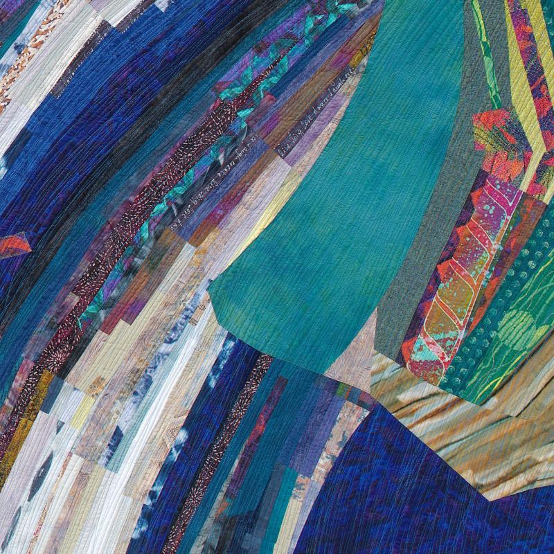 Cottons, some hand dyes, including hand-painted batiks from Malaysia (by Turtle Hand), batting, threads.