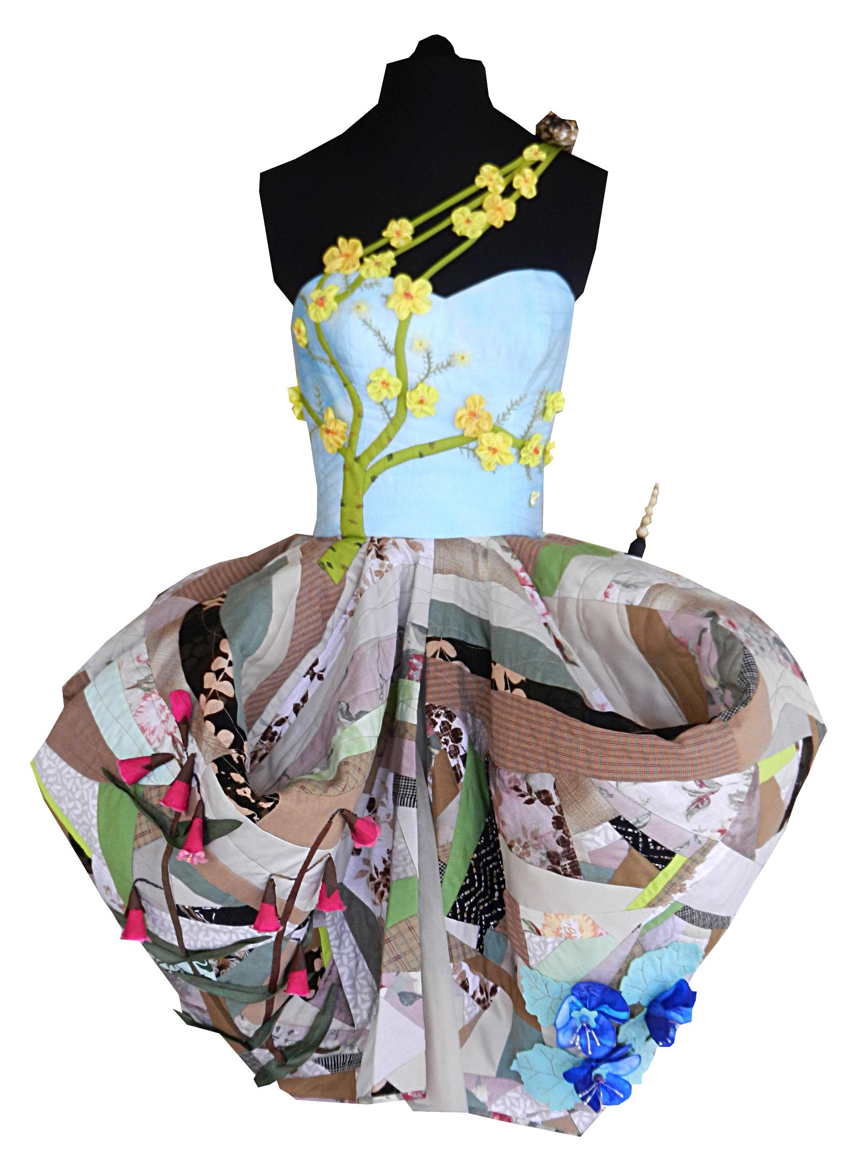 Designed, draped, pieced, hand appliquéd, painted, beaded, machine quilted, stuffed, stiffened, embroidered