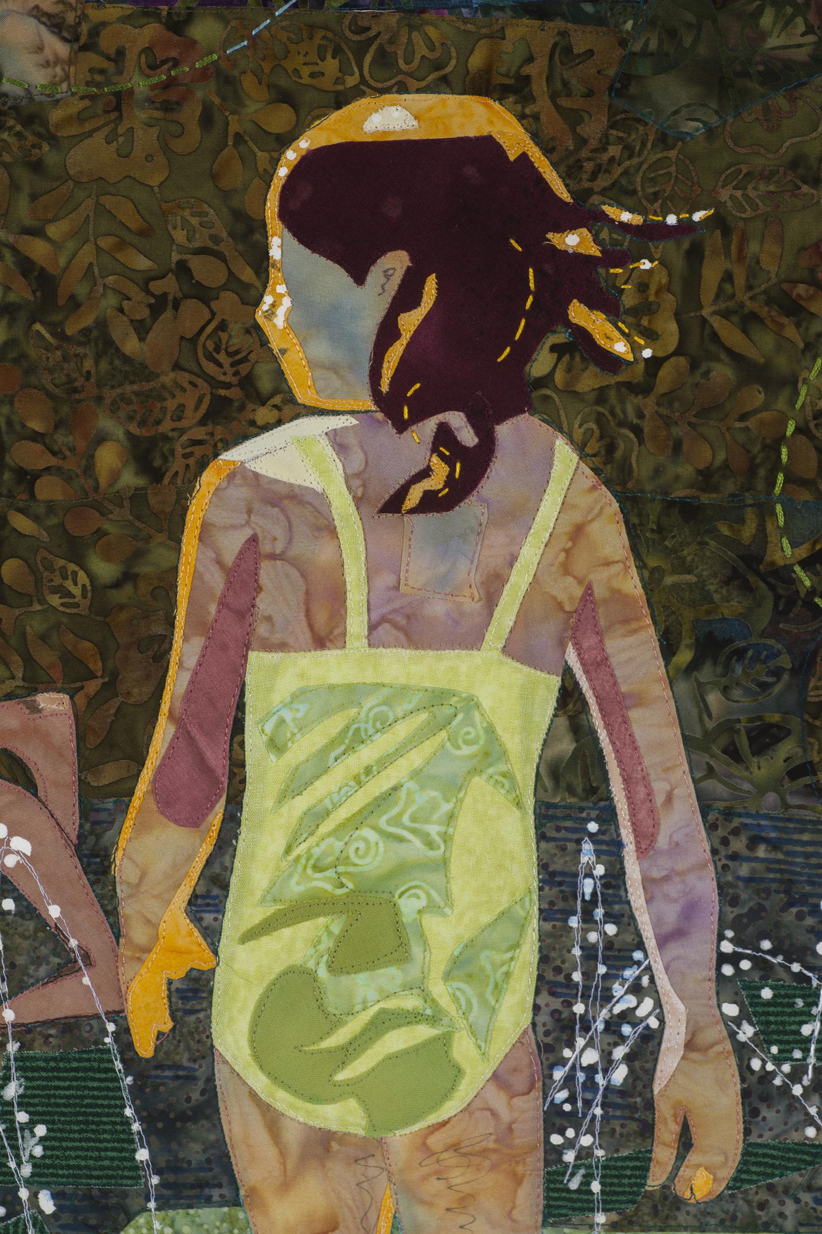 Slip-and-slide is a much-loved summer activity with lots of running, sliding, crashing into friends, and laughing. The relationship of people to each other and the outdoors is a favorite subject of mine. Candid photos provide lots of inspiration for creating art quilts that are universally nurturing.