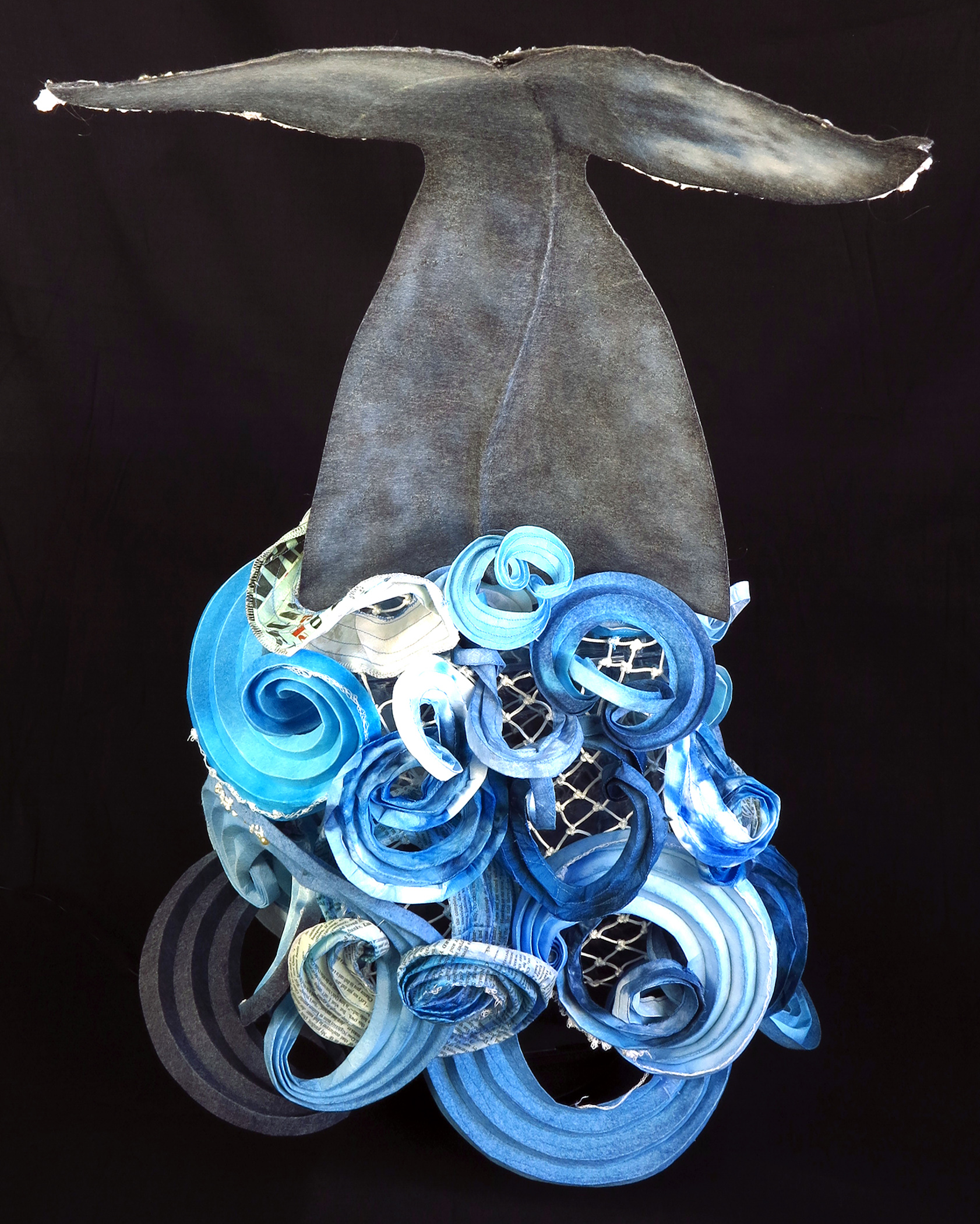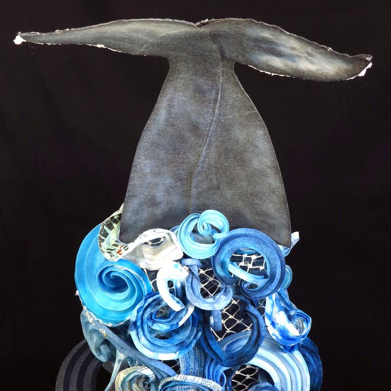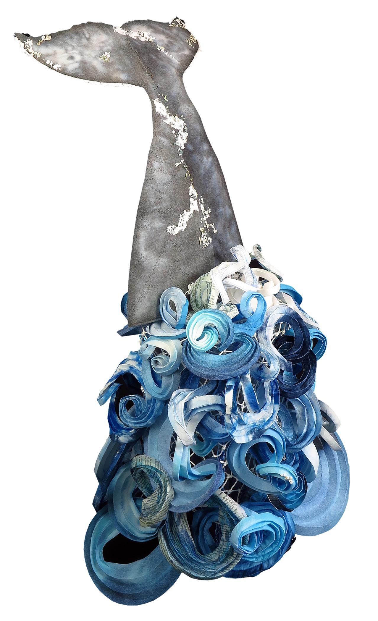 The spectacular moment when a whale’s enormous fluke breaks the surface is a truly awesome sight and a reward to those who are patient. The first time I saw this wonder was in 2006 in the town of Hermanus, South Africa, where around 100 southern right whales go to calve each winter. I remember the swirling ocean gradually erupting, and in remarkable slow motion, a huge tail breaking through the surface just before a whale prepared for a deep dive in search of food. In this piece, I have re-imagined that moment, with an ocean of gently folded curves, broken only by an enormous single tail.