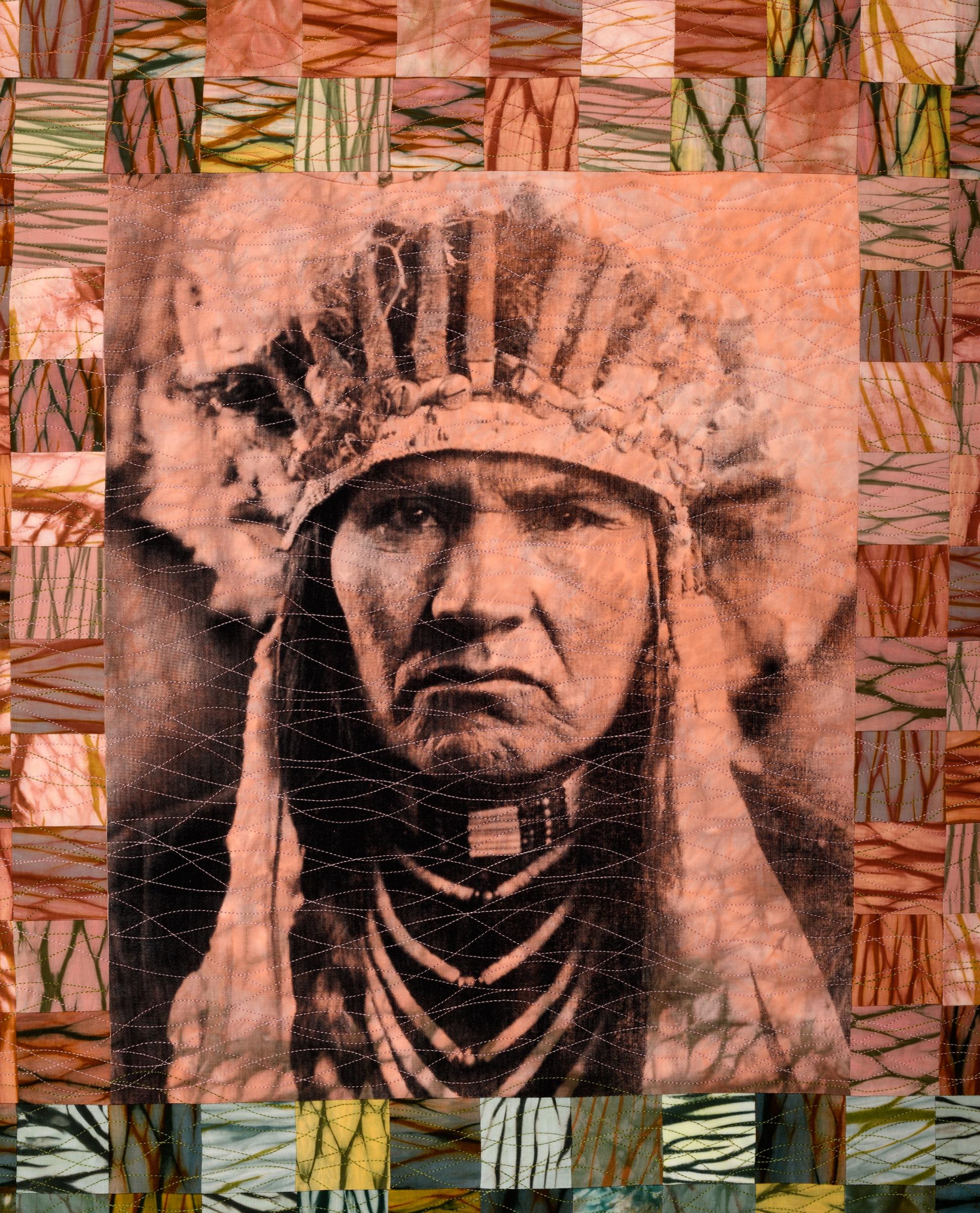 Hand screen printed images on hand dyed fabric (utilizing various techniques, including shibori, resist and low immersion) machine pieced and quilted.