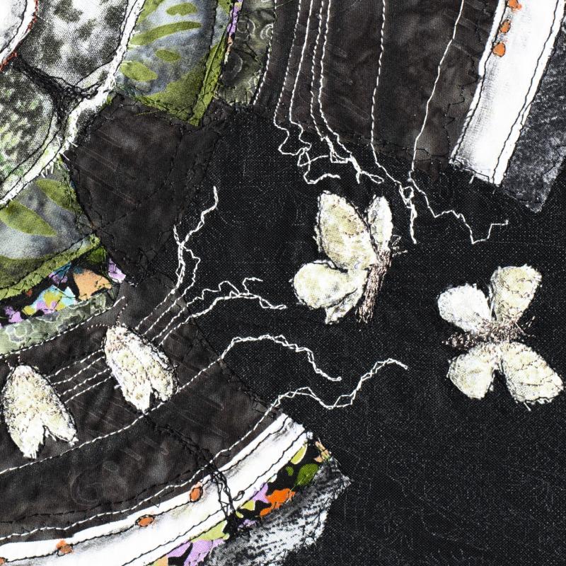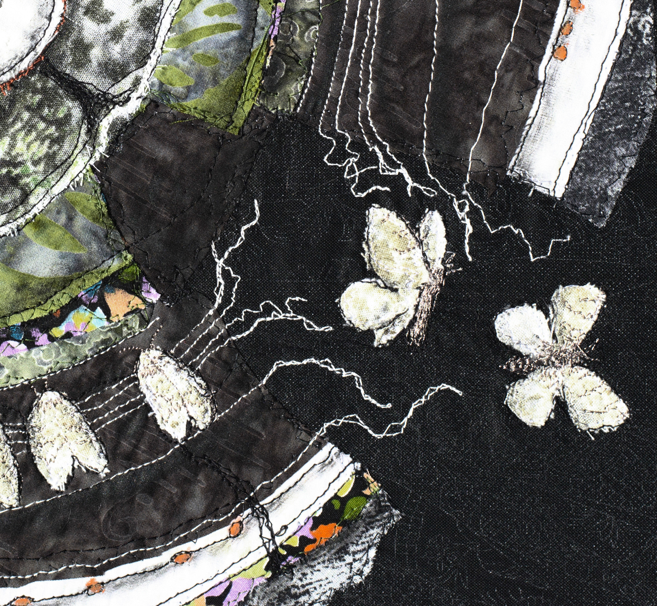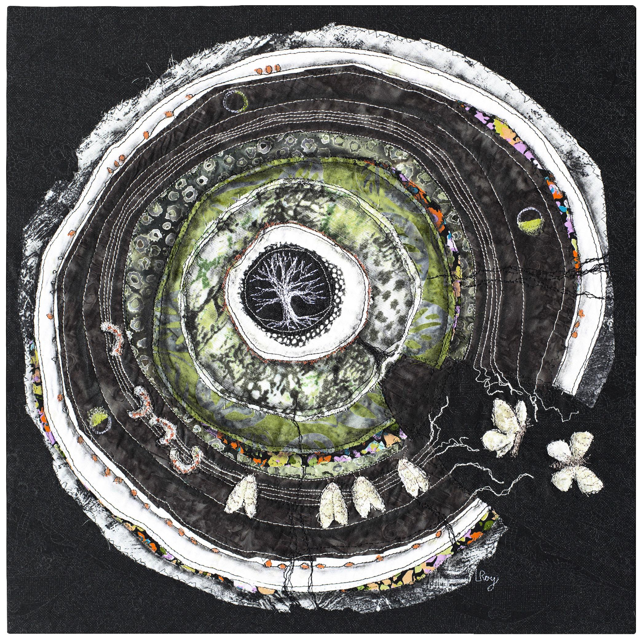 I may be the only one who ever used the humble Spongy Moth as a source of inspiration. Yet this is one important little insect. Ever since its accidental release in 1868 by a French scientist on the Eastern Coast of the US, this intrepid traveler has become responsible for the defoliation of millions of forest trees. In this piece, I wanted to show how trees record insect depredation in their rings... a slower year of growth results in a much narrower ring, and recovery can take a few years.