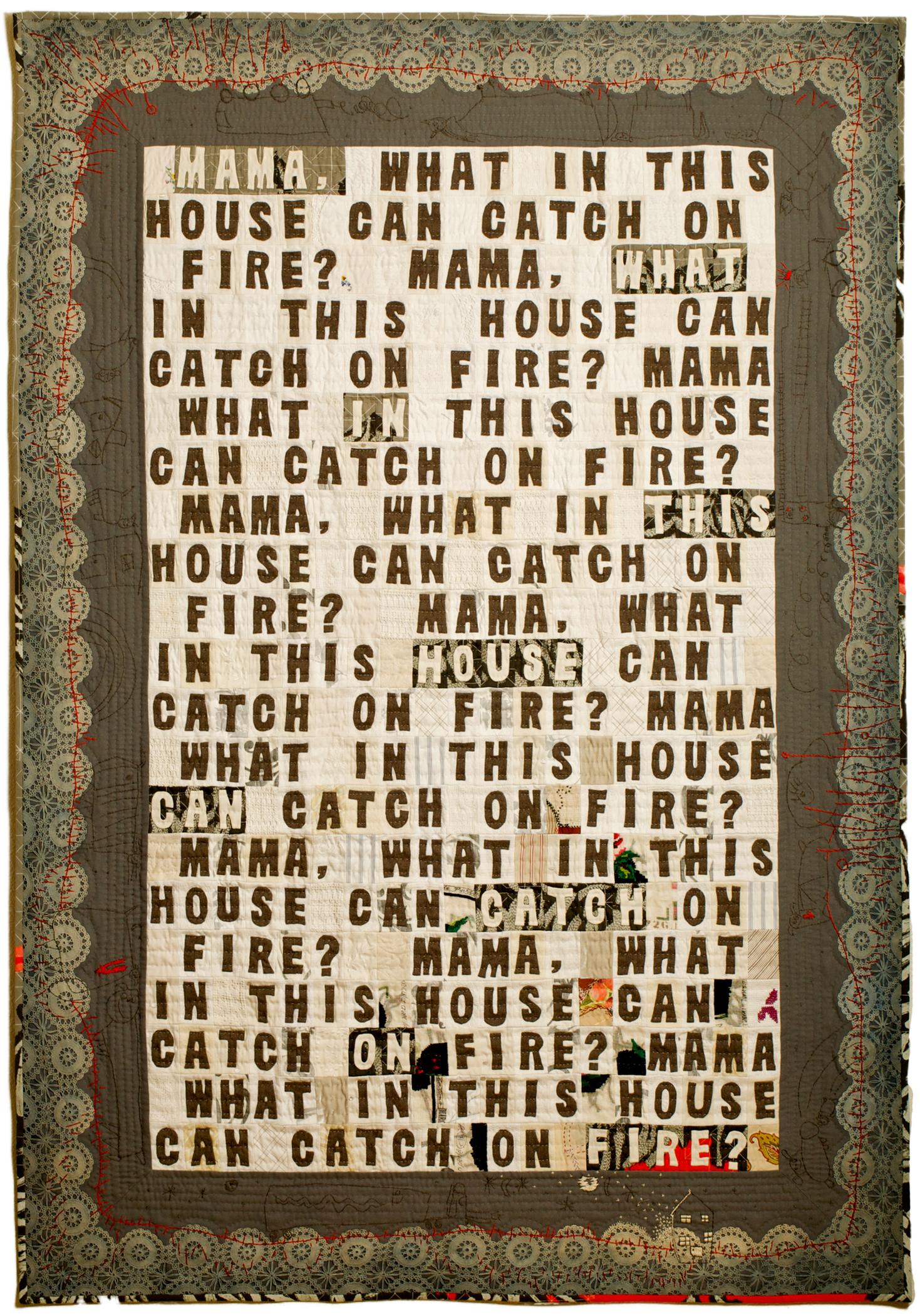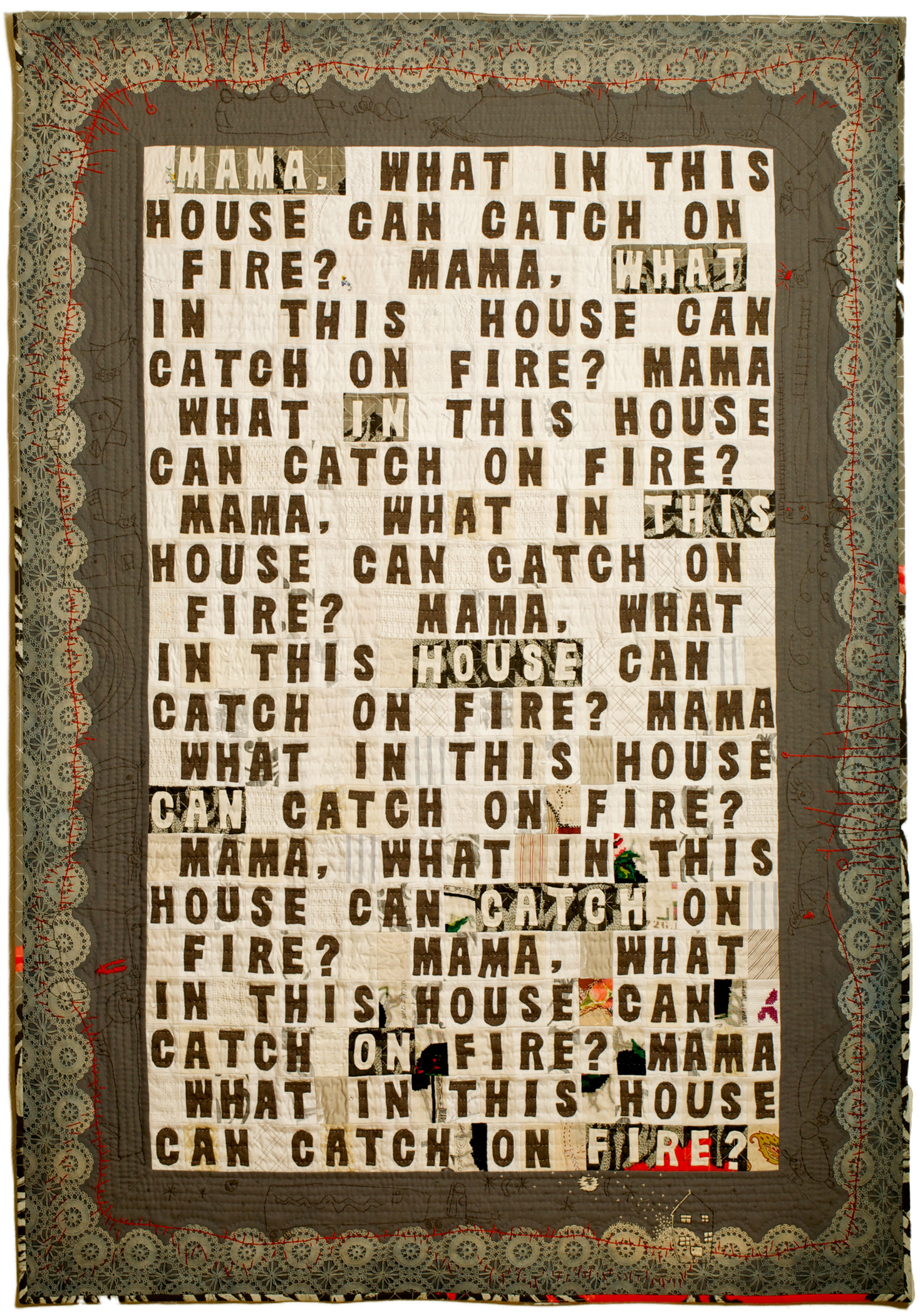 I'd been a painter and an illustrator for many years before creating "Spontaneous Combustion," my first exploration of the art quilt form. Its creation was a direct response to my mothering experience, the need for an artistic medium that could be manipulated while raising small children and my drive to understand the previous generations of women who had made the domestic linens I incorporated in the work. This piece brought me closer to my relationship with the handmade and was the catalyst for the women-centered work I continue to explore.