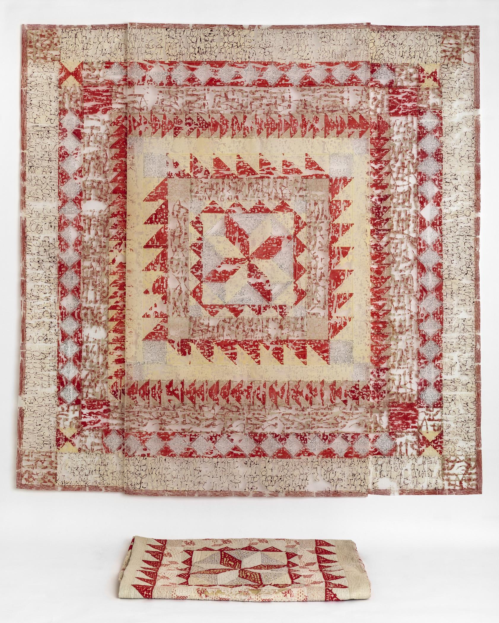 I chose to make a contemporary copy of a very traditional, well worn functional quilt and use fabric transparency to comment on that invisibility of women in history and craft, whilst paying a personal homage to all the quilt makers whose work and experience allows me to make non-functional art work.