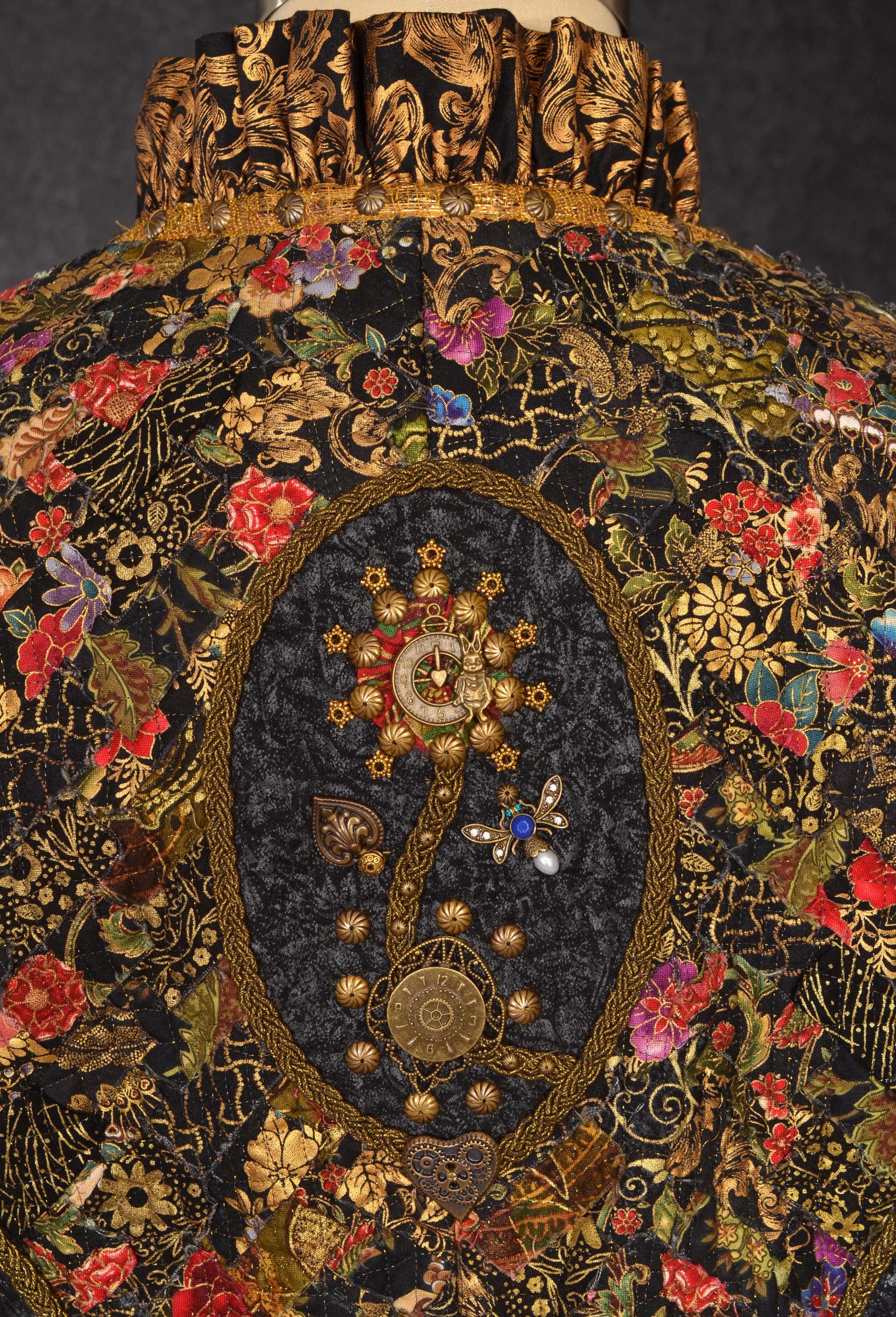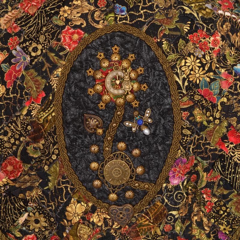 Free motion quilted, crazy quilt pieced, hand beaded, manipulated, and fusible appliquéd