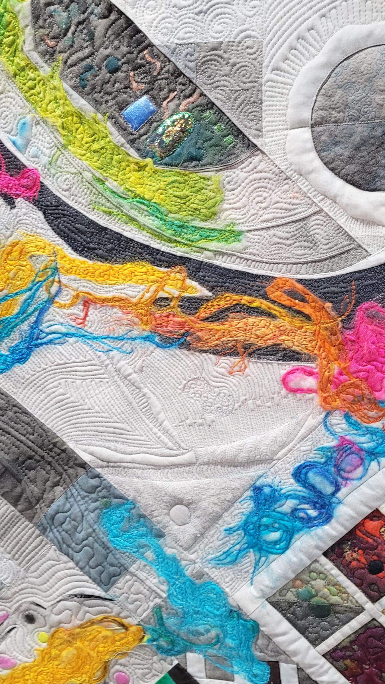 Cotton, fabric paint, thread, silk and wool fiber, Angelina fibers