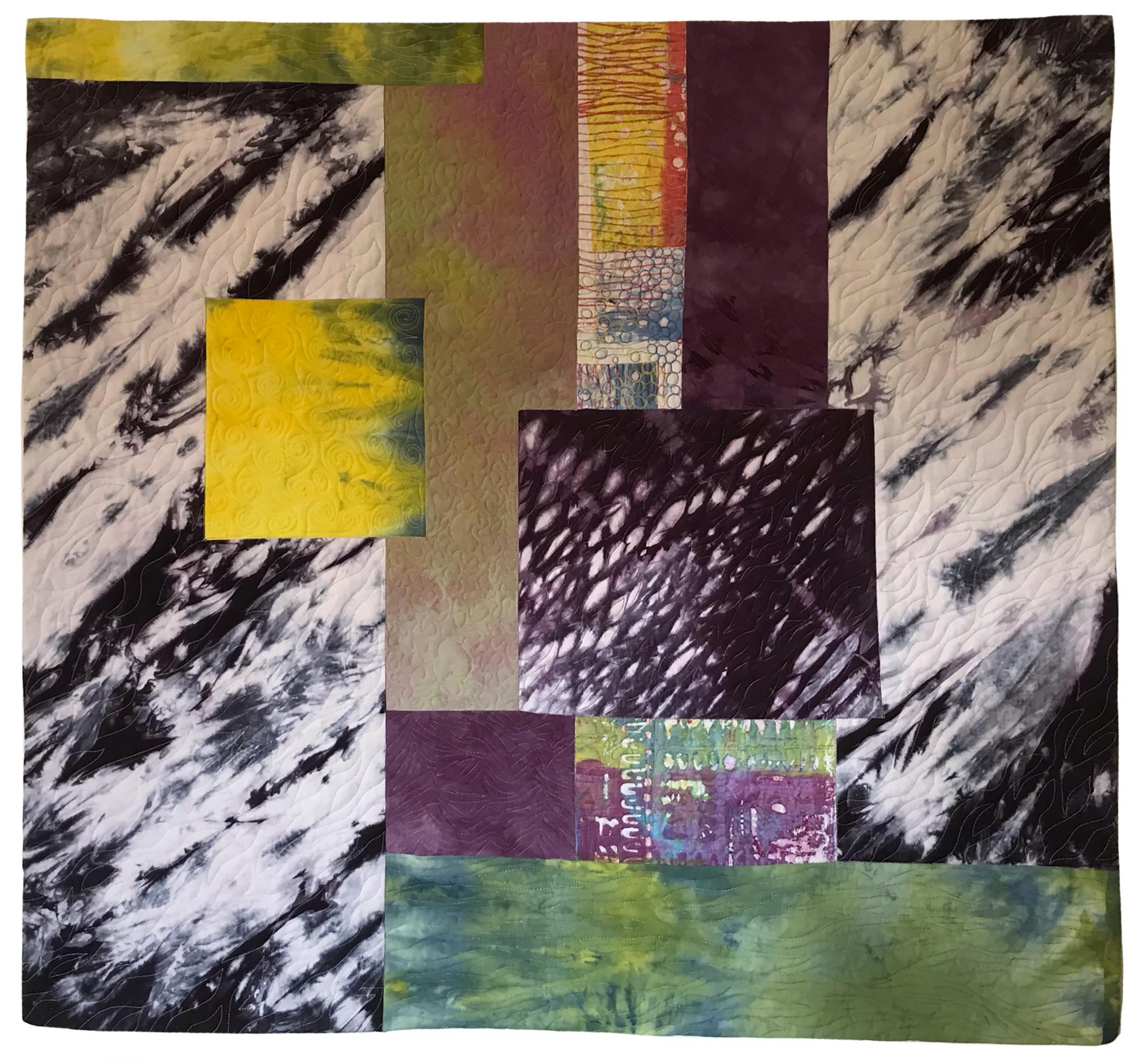 This quilt is the last piece in a series of three where I find rest and peace. I overcame the challenge to cut into the beautiful designs that were created in the printing process. Even when periods in life are difficult and overwhelming, a piece of light can bring relief and creates balance. That is what I experience each time when I'm looking to this work. For me this quilt is the best of three, that's why I enter only this one for this exhibition.