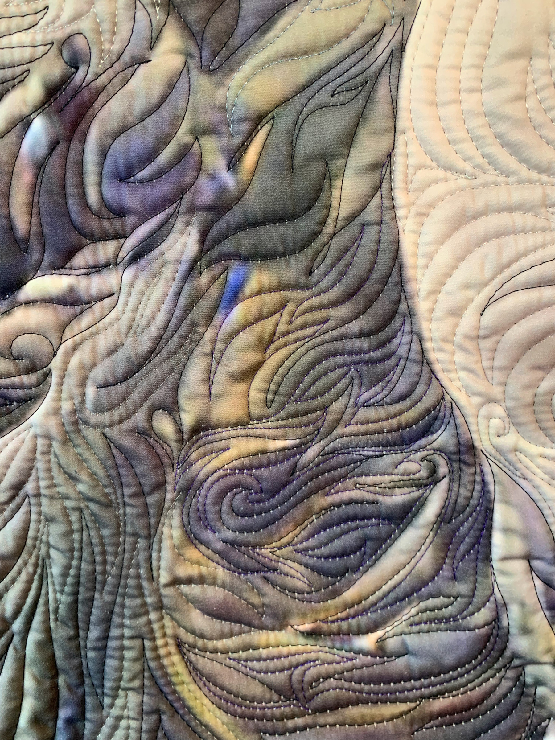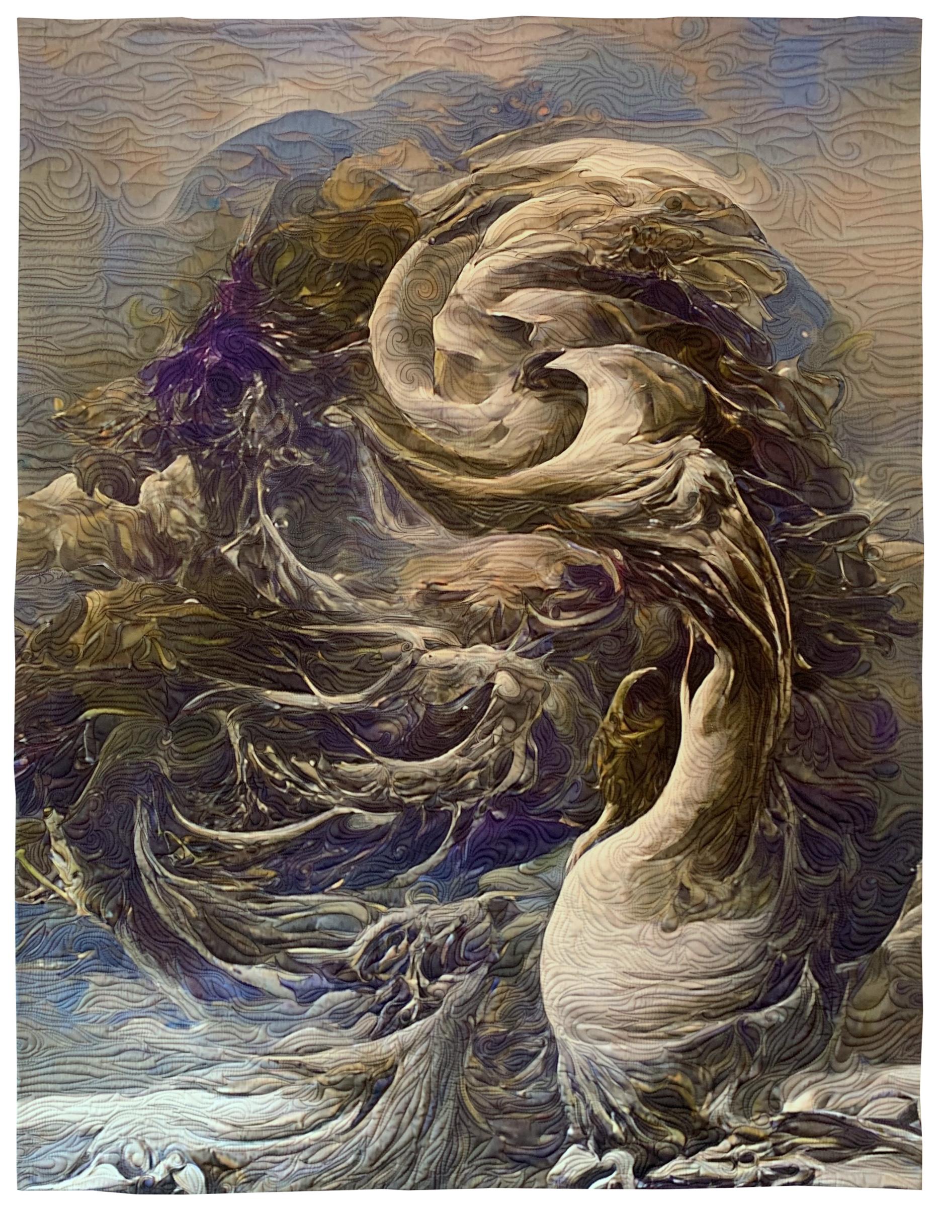 Digitally created and manipulated, printed, free motion quilted