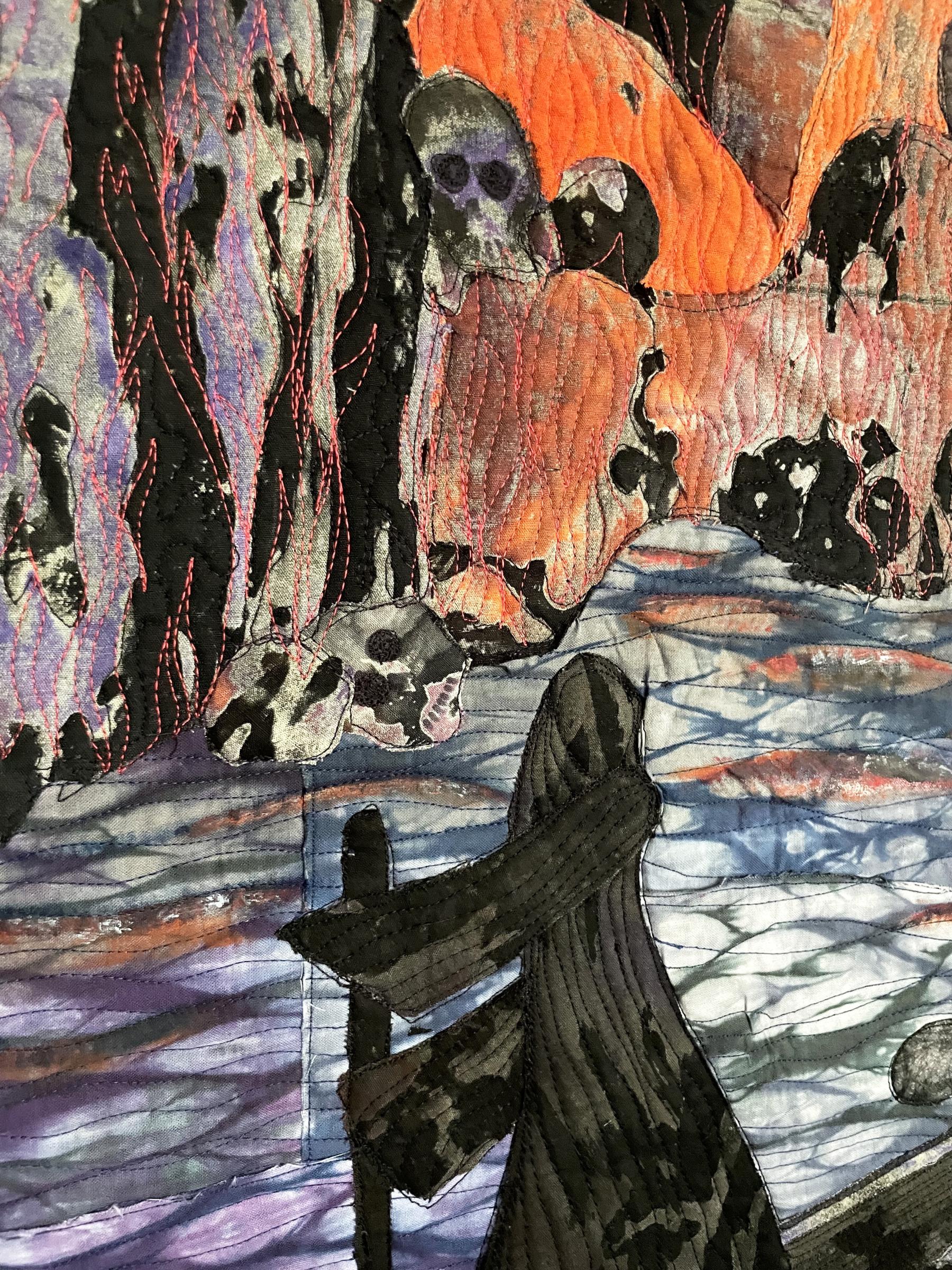 In Greek mythology, the river Styx forms the boundary between the world of the living and the world of the dead. The ferryman, Charon, delivers the souls of the departed across the river, for which he receives a gold coin. In this piece, we encounter Charon as he is ferrying a soul to the other side. The fiery entrance of Hell looms ahead, and the soul is resigned to the fate awaiting him.
