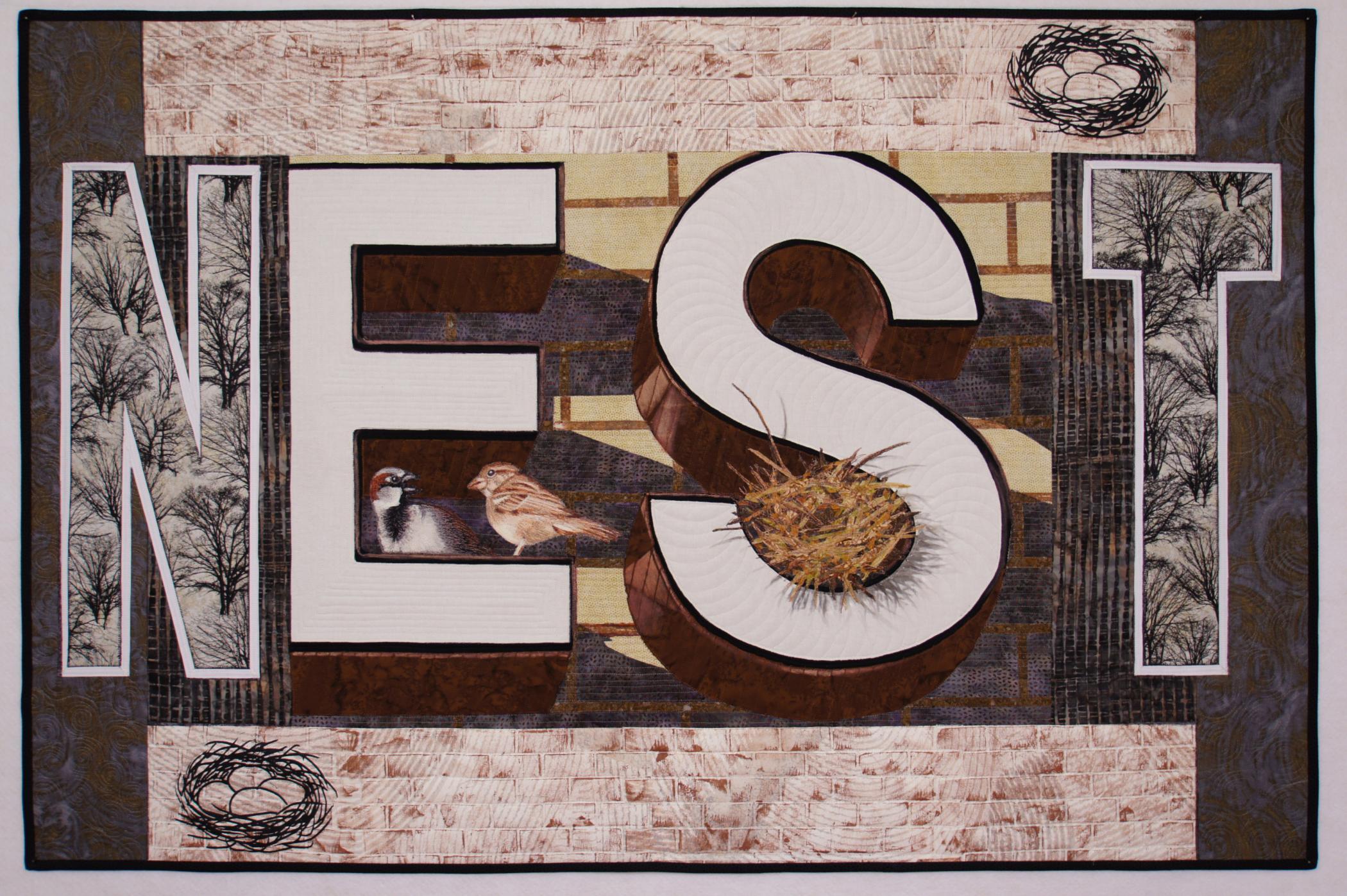 I have been a birdwatcher all my life. My bird quilts are based on my own photographs, taken with a long lens on my digital SLR camera. My favorite way to show the shading and texture of bird feathers is by using hand guided, free motion machine thread painting. This technique requires scores of different shades of thread, intensely stitched and layered to create the appearance of feathers.