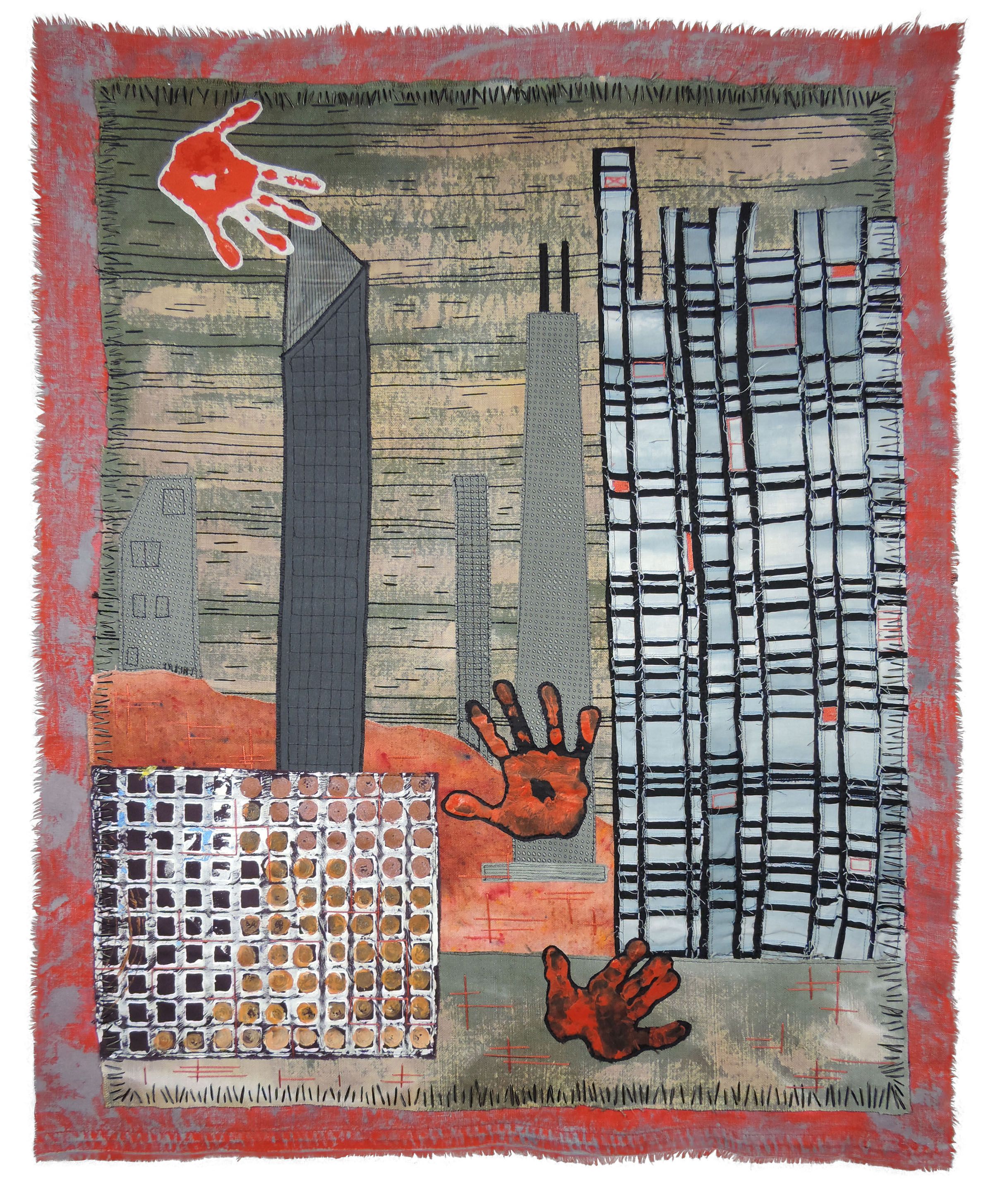 This quilt is dedicated to the 30 children accidently killed by gun violence from January 1, 2014, to June 30, 2016 in Chicago, Illinois.* The juxtaposition of the projects against the iconic Chicago buildings suggests tolerance and indifference.