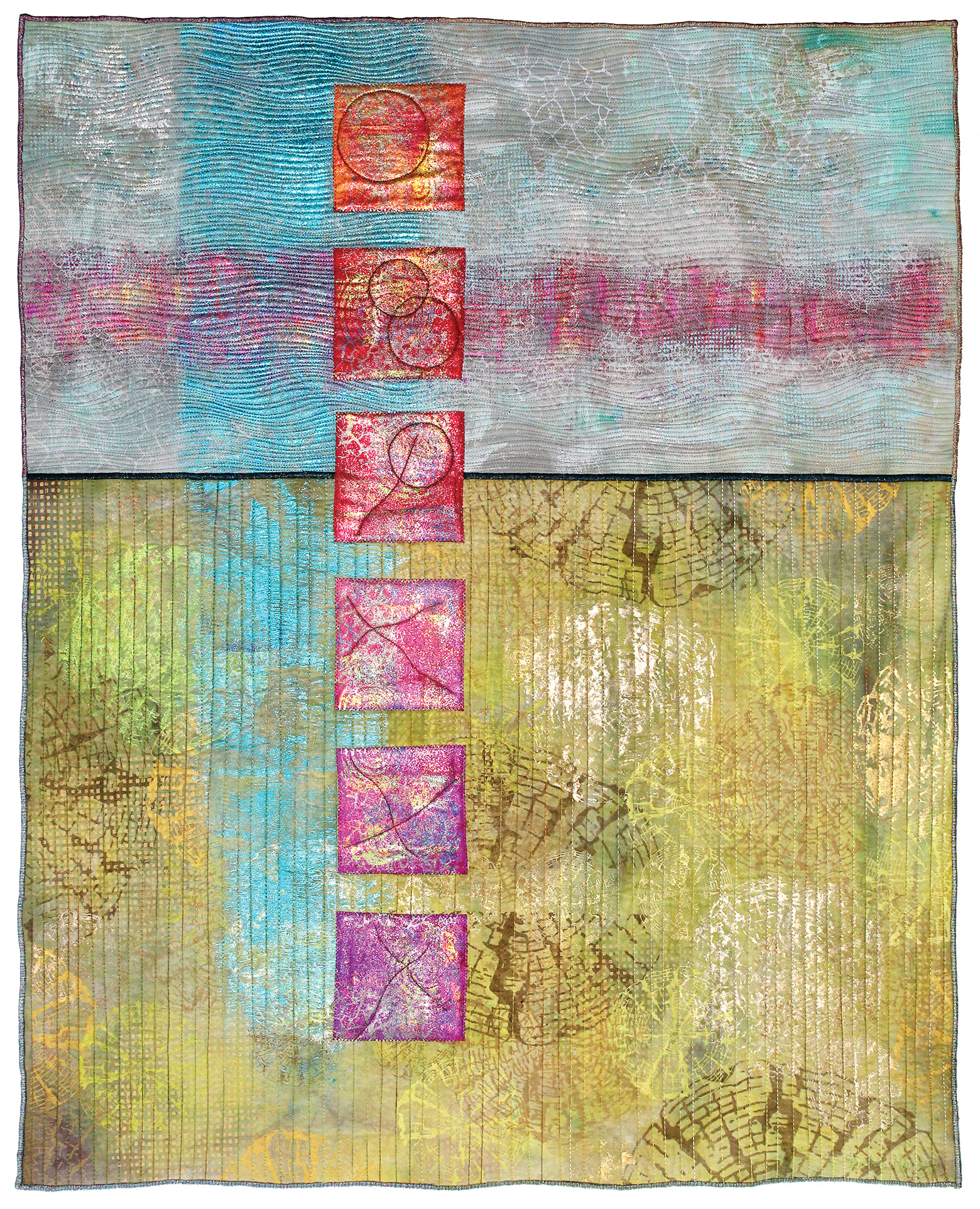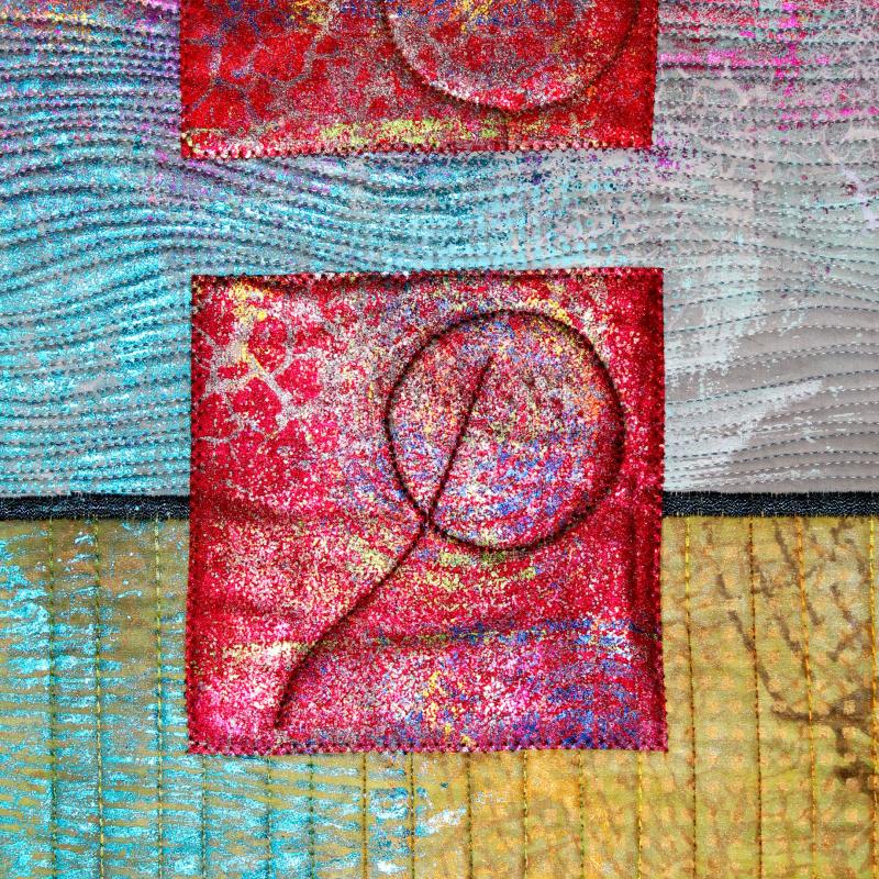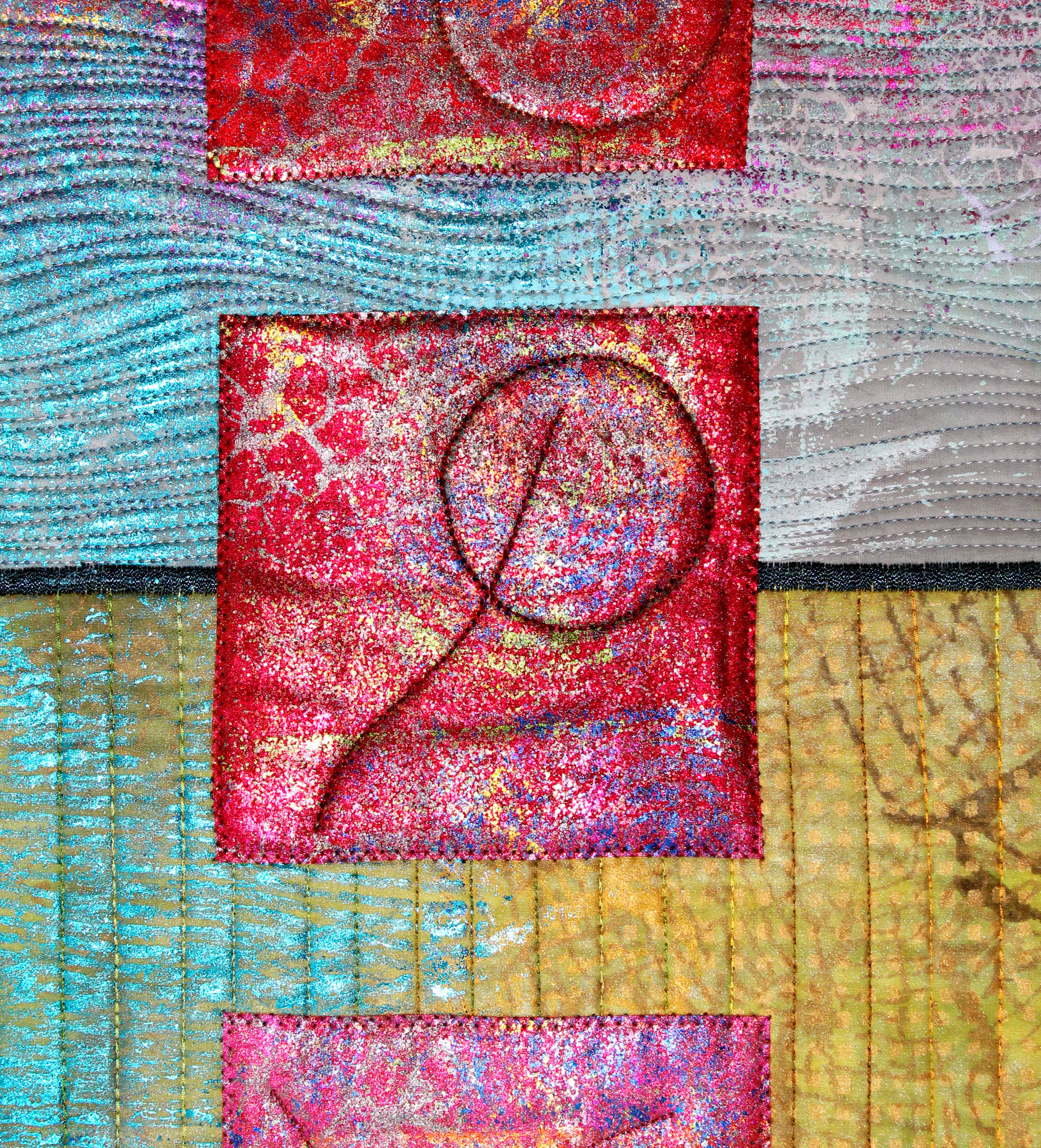 Hand dyed, painted, drawn, screen printed, machine stitched