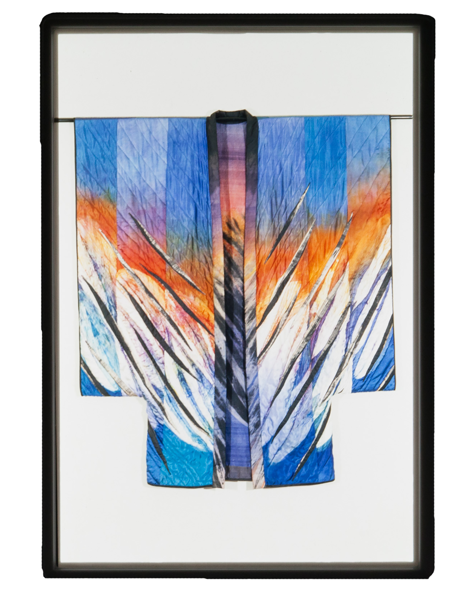 Sweltering Sky Kimono is a two sided quilt, shaped like a kimono, designed and conceived as a work for the wall. It was one of the first kimono shaped pieces I ever created, a shape I am fascinated by, to this day. I had a solo exhibition at the Texas Quilt Museum in 2015 (curated by Sandra Sider) that consisted of more than 30 of my kimono shaped art quilts. Titled "Intuitive Symmetry" the show explored the harmony and balance and well as the dynamism of the kimono form when used as a canvas for art.