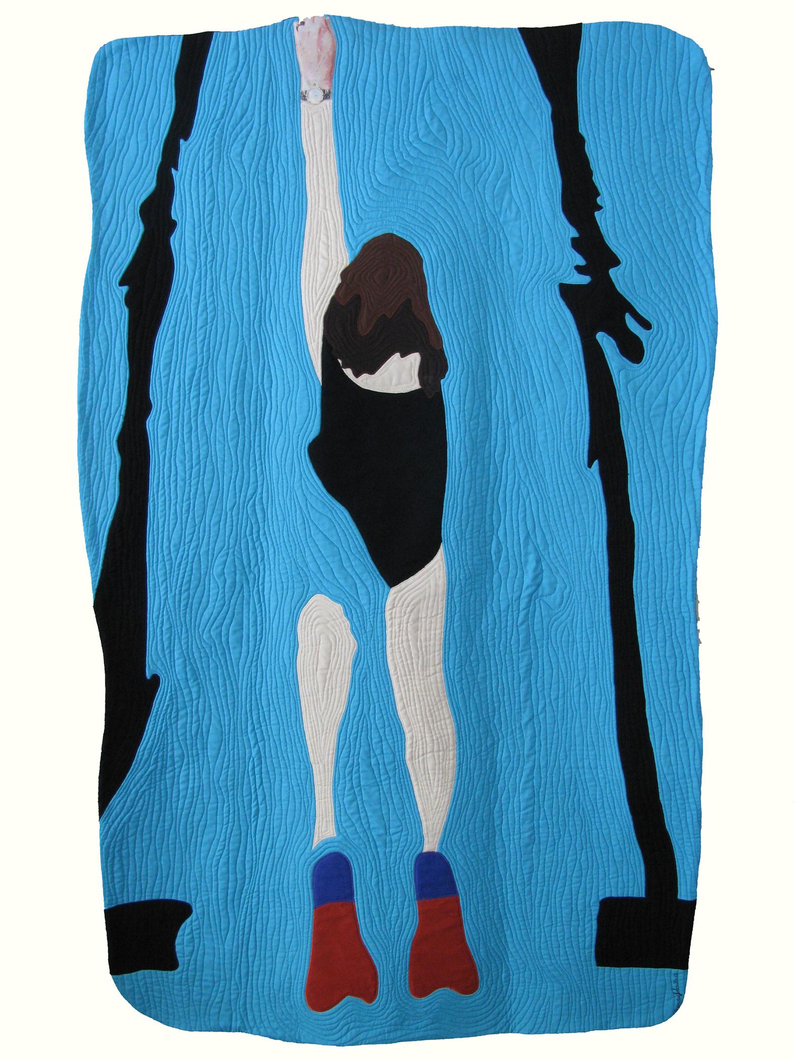 Suffering a work related injury and over coming that physical trauma I always wanted to somehow let people know that it is possible to recover completely. One day leaving the pool I knew that time had come but how? I visited a local museum and saw a retrospective of painter Joan Brown's artwork. Before I could even finish viewing all of her work I literally fled the museum and by the time I had arrived home I knew it was "ok" to use myself in my art. Joan had placed herself in all of her artworks, so why not me. "Swimming Upstream" was the beginning of a thirteen piece installation telling my story which has touched people in so many ways I never thought possible. The installation has been recognized from the United Kingdom to the three shores of these United States. Viewing and studying women artist has always given me strength to carry forward with my ideas.