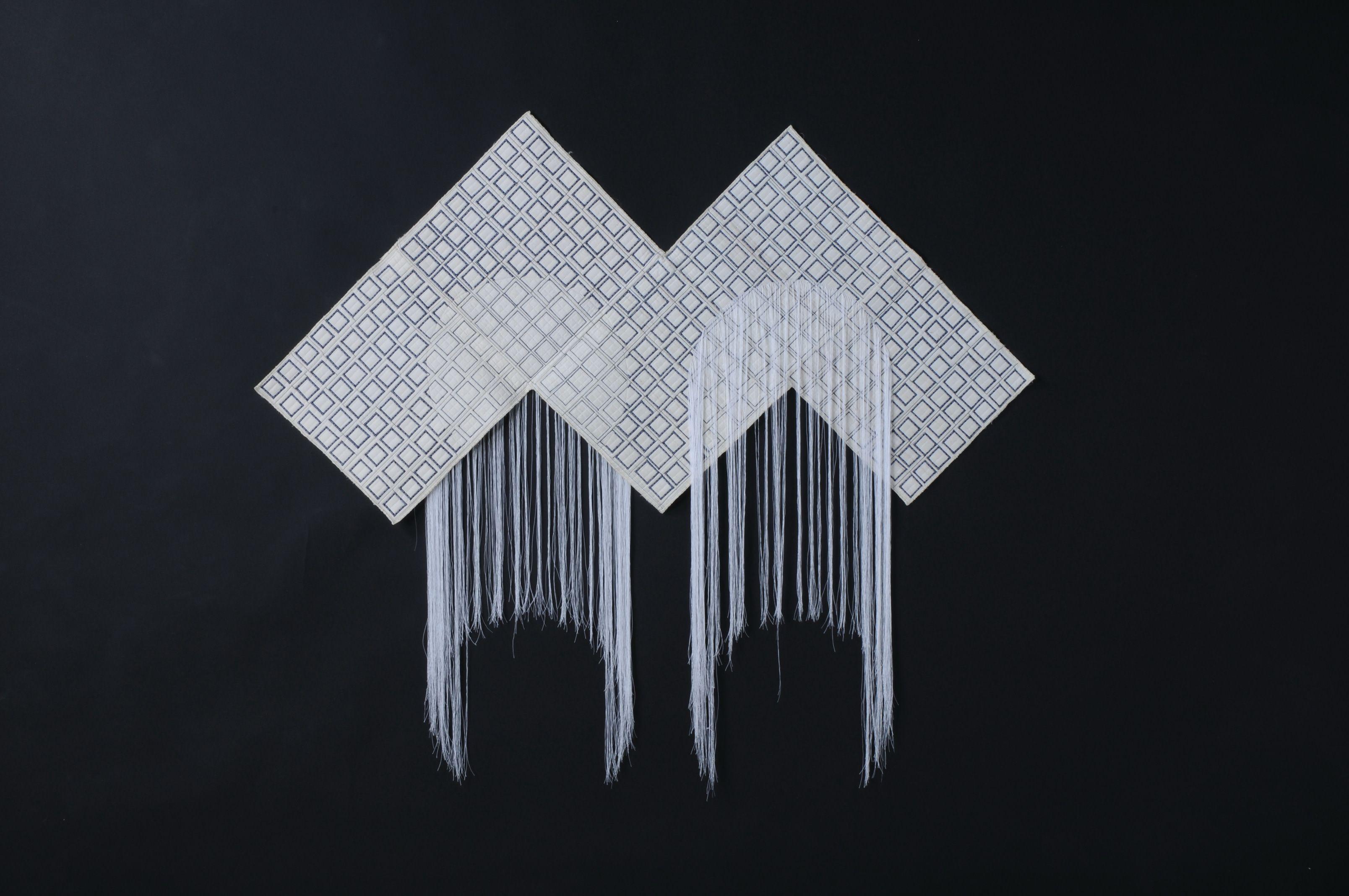 I wanted to take two-dimensional quilts to the next level. However, I did not want to achieve this by creating a concave-convex surface. My idea was to create something that appears flat from which another world could emerge. I let threads hang in front and in back, which created another space below, an unexpected bonus. I wish to explore this technique further.