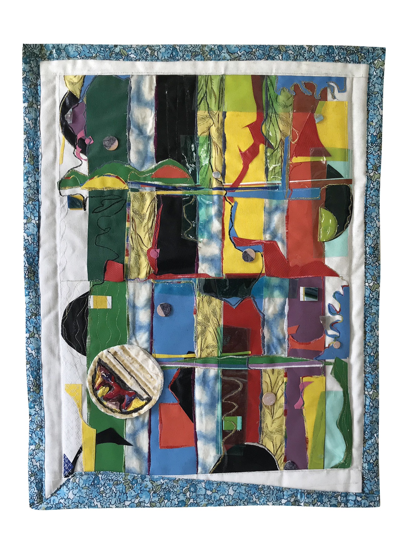 Fabrics were pieced and sewn onto an extruded fabric backing and then bound and backed by cotton fabric.