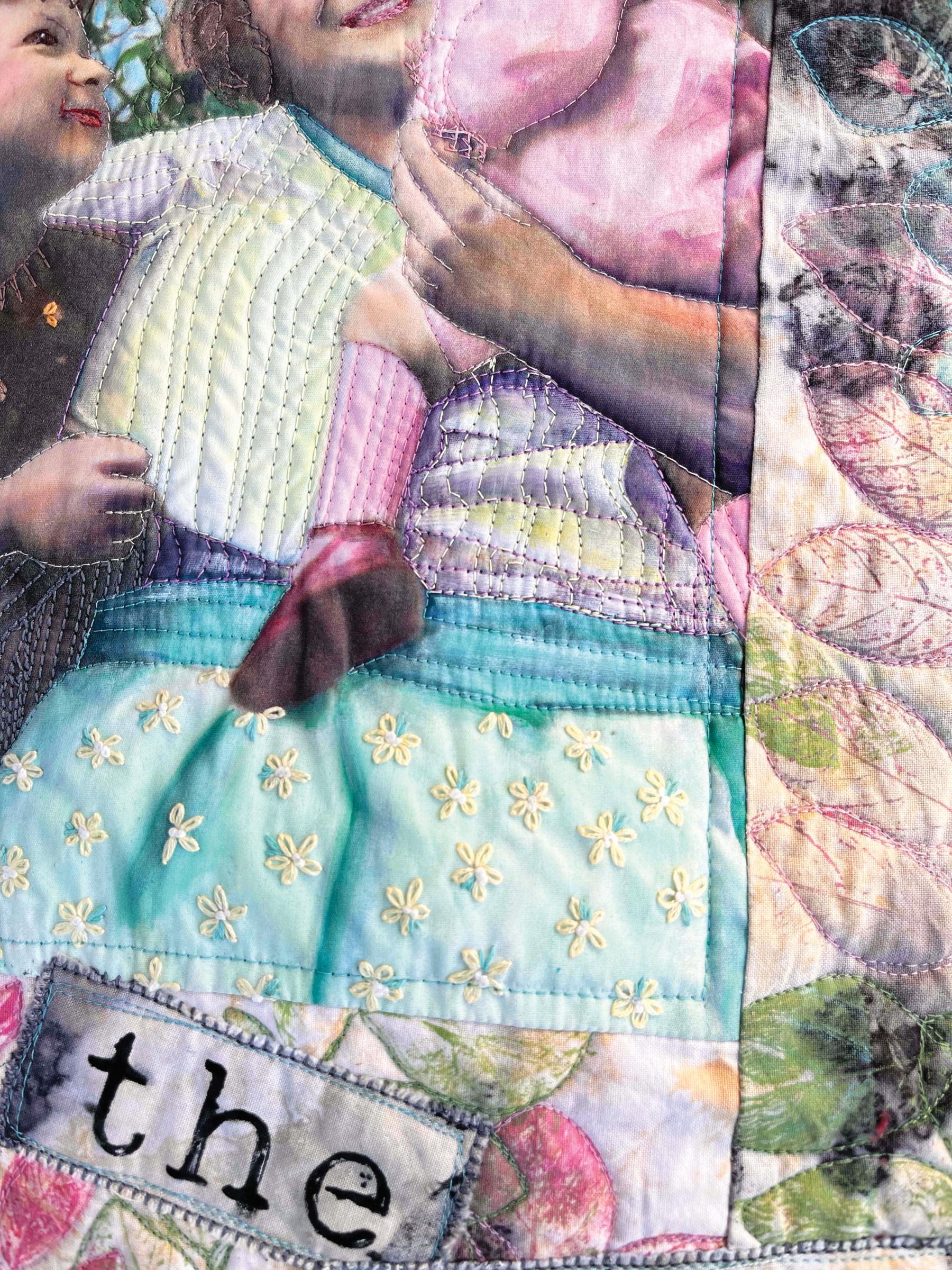 Eco-printed, hand embroidered, hand painted, free motion drawn