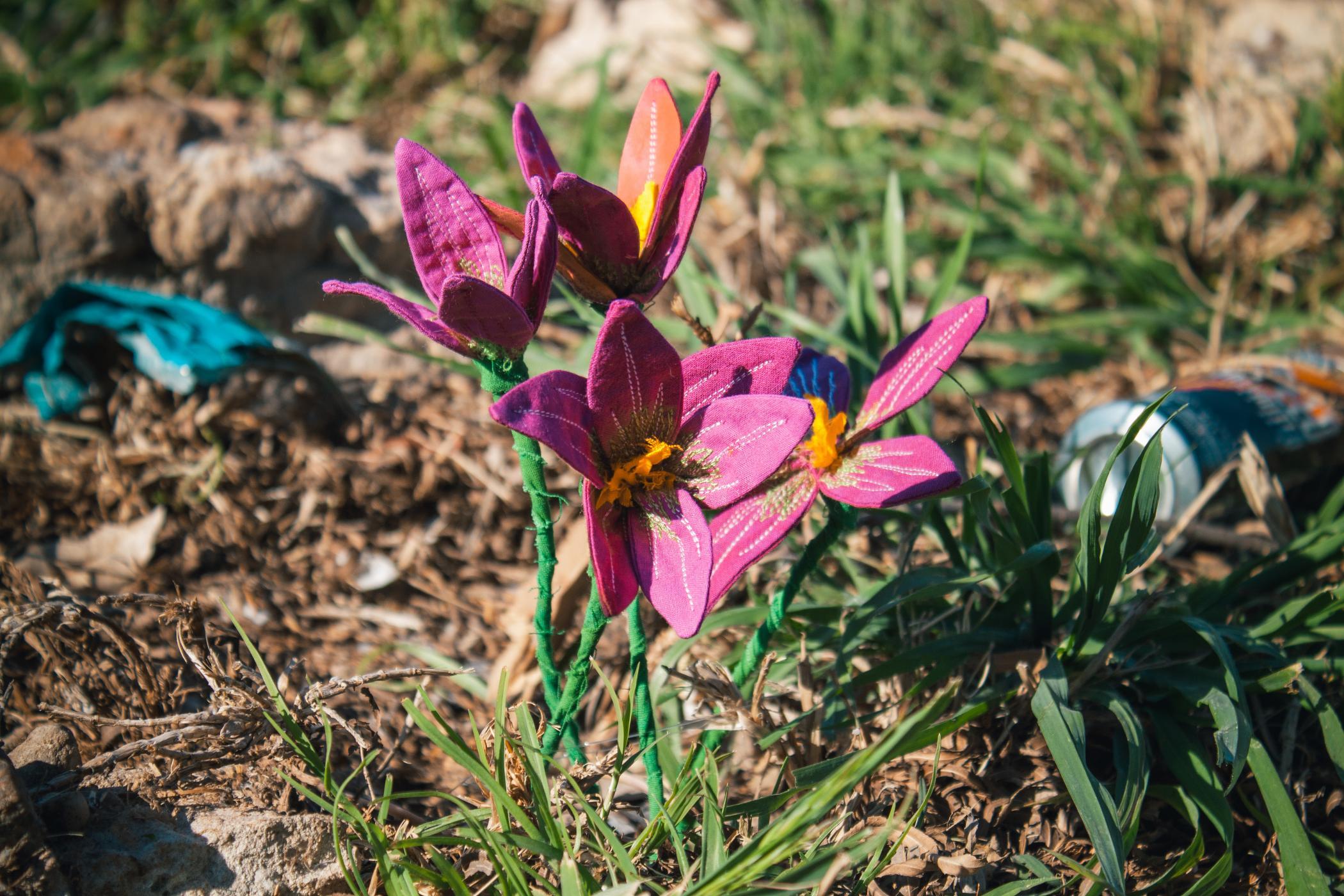 cotton fabric, assorted threads, wire