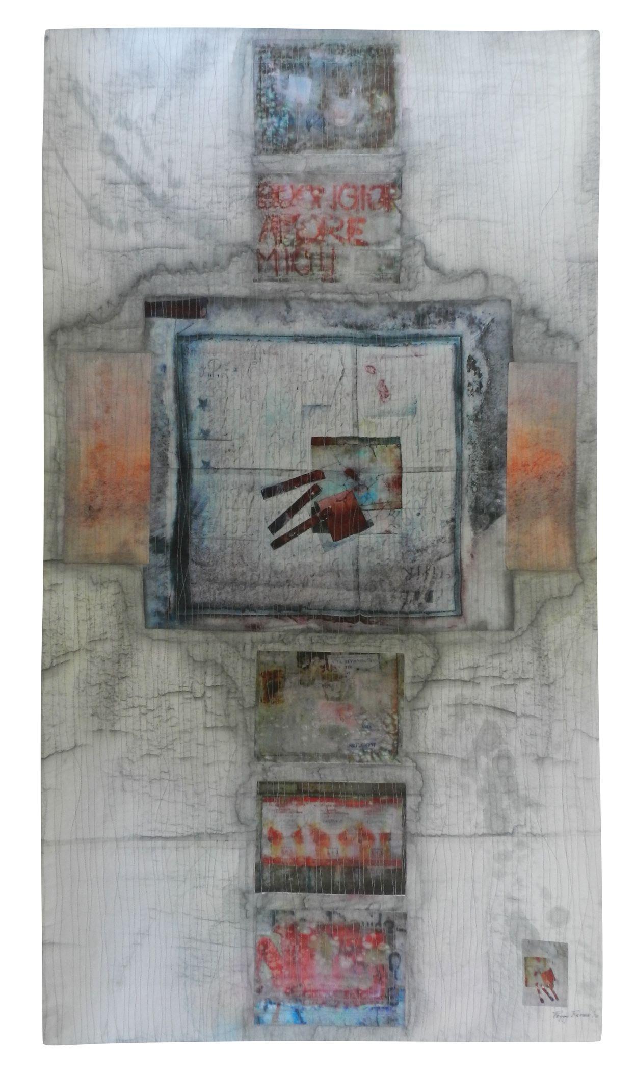 I don't text in the modern technological sense of the word - however I love text. I love to read text, I love to write text, and at times I enjoy using text in my paintings and art quits as a design element. The central image in "Text and Textures of Tuscany" is a digital transfer of one of my watercolor paintings inspired by the text/graffiti of Italy. My photos of graffiti and tattered posters, which are found embellishing many Tuscan walls, complete the design.