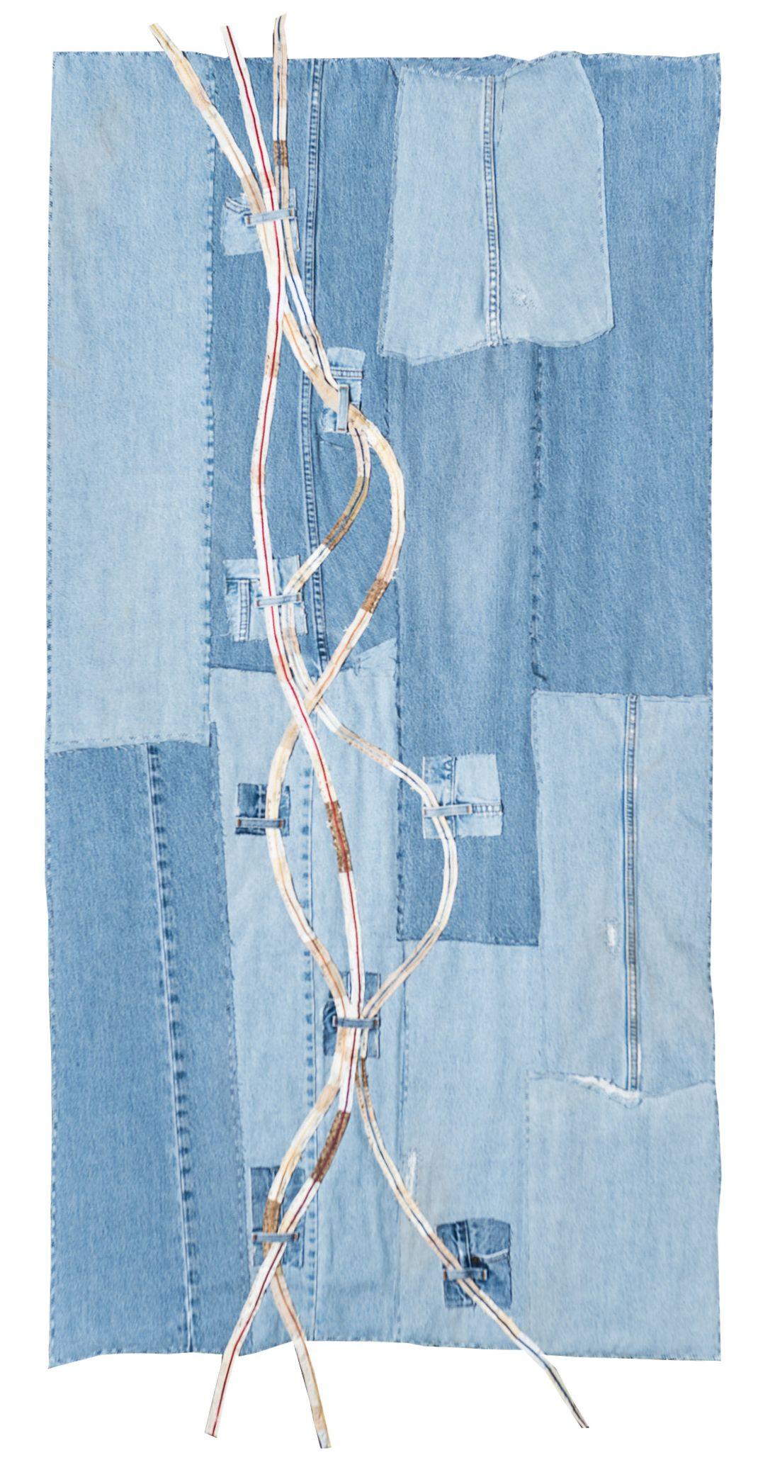 Working in a thrift store made me aware of how many items of clothing and linens are thrown out each year. I have learned how to mend much of my own clothing in an effort to reduce waste, but some items are just too badly damaged. When I saw Upcycle, I immediately thought of my totally worn out jeans and the piles of damaged materials in the thrift store headed for the trash. This quilt is made of my jeans, old linens, and small fabric scraps and batting from my own quilting waste. It represents family and how we move away from each other, come back together, and move apart again, always tied to each other. Family is the fabric and foundation of our lives.