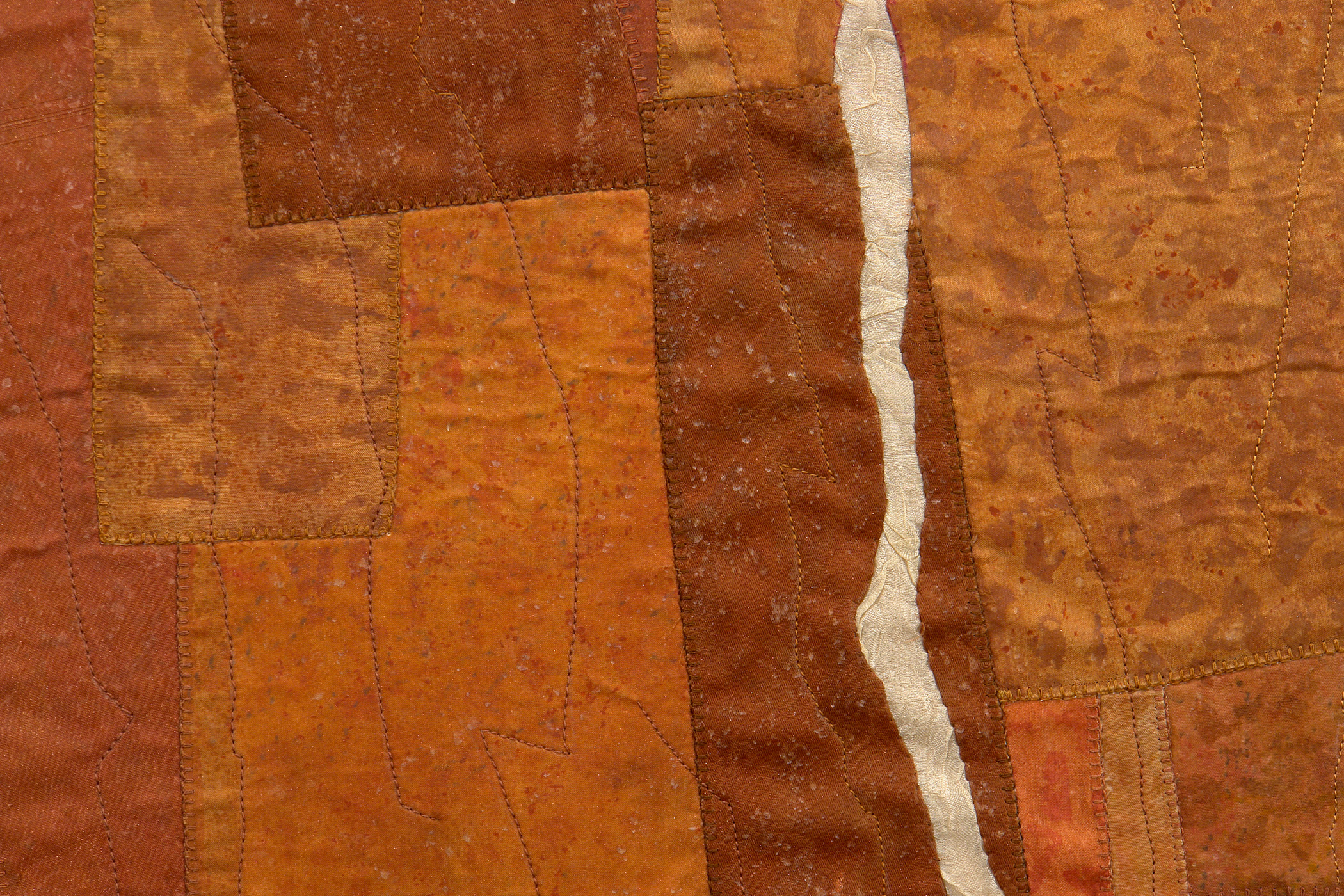 Dyed, screen printed, painted, hand and machine appliquéd, machine stitched