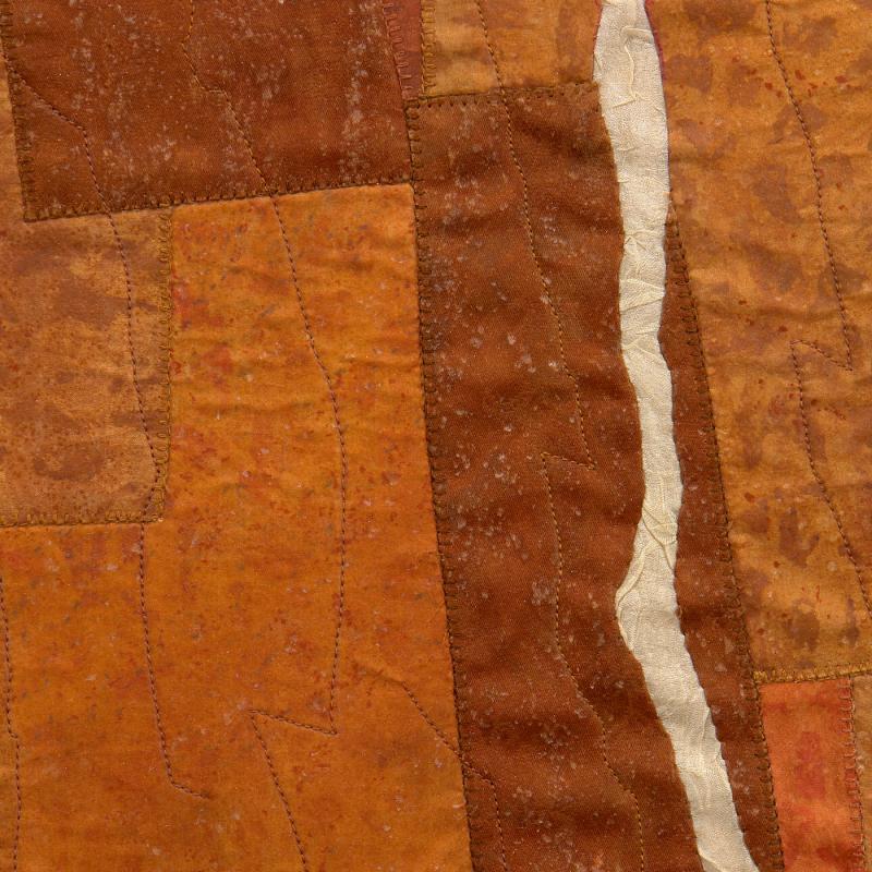 Shunning chemical dyes for health and environmental reasons, my exploration into plants as a primary dye source began in 1995. In an effort to employ more sustainable practices, the foundations of my assemblages are repurposed textiles which are altered by shibori and natural dyes. One of my goals is to persistently narrow down the processes and resources in the making of each piece, although it seems quite impossible for the finished work to be as sustainable as nature itself.