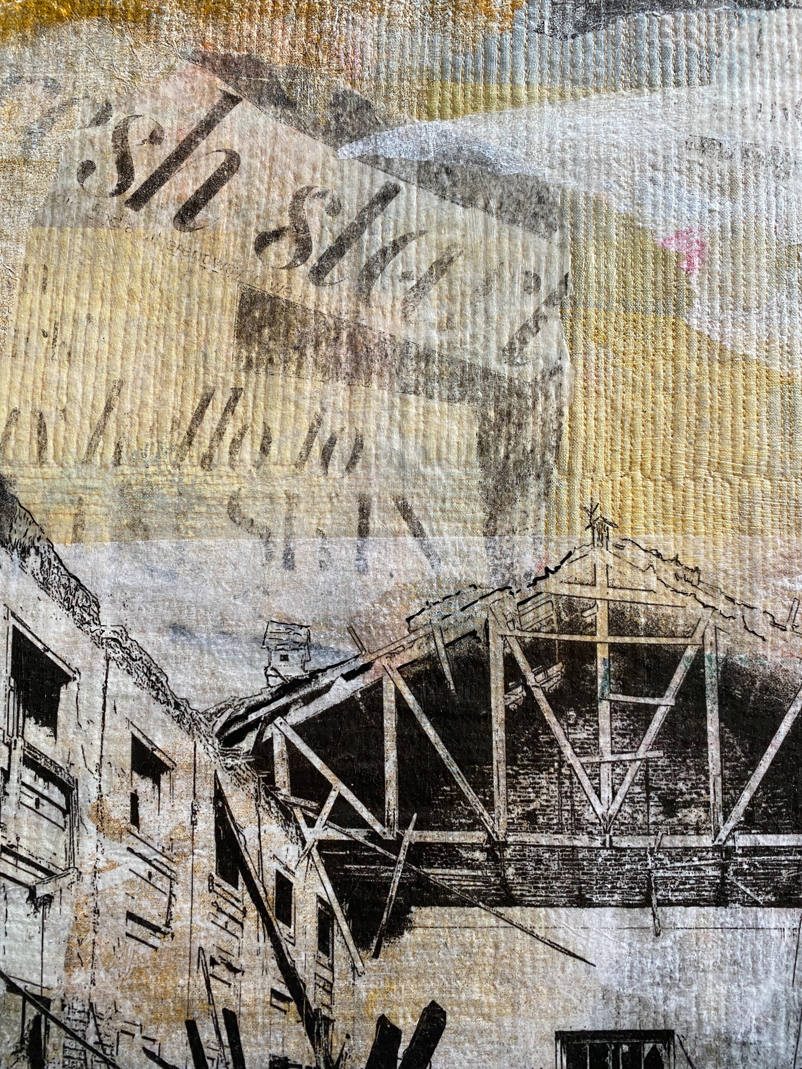Cotton, thread, papers, tissue paper, manipulated photographs
