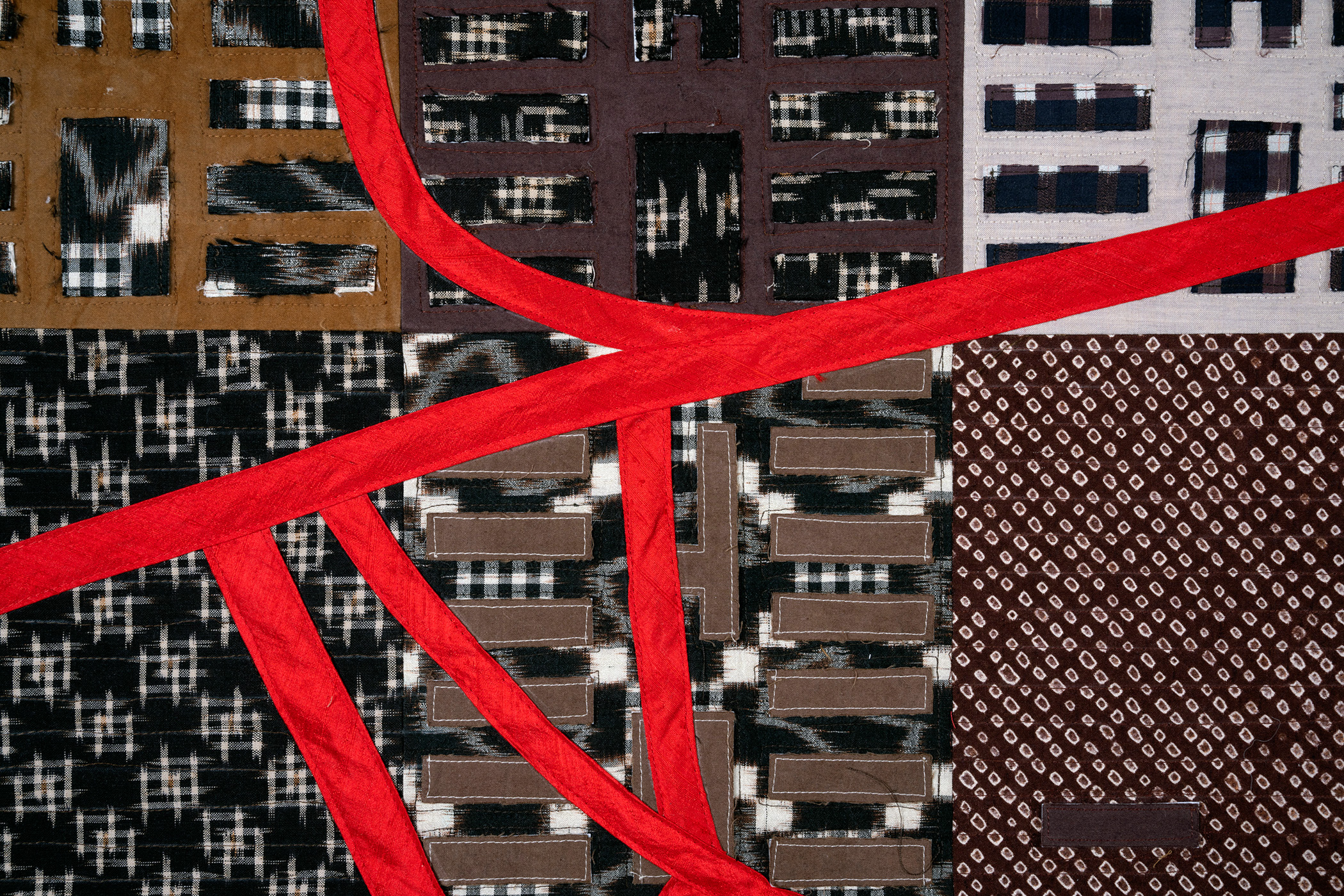 Vintage kimono fabrics, raw edge appliquéd, machine quilted