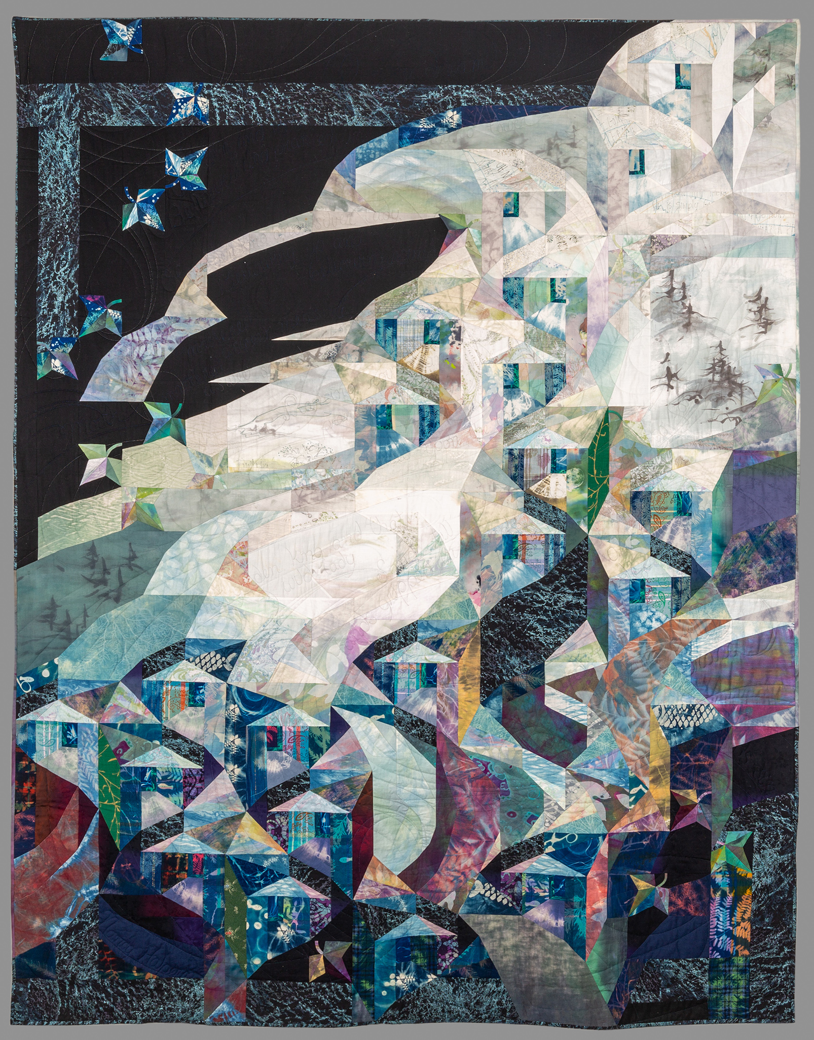 This quilt is about love of towers, from the one I played in as a child on the edge of a marsh in Ipswich, Massachusetts, to W. B. Yeats's Thoor Ballylee, which I have explored only through his poems. Billy Byrne's dream from "Under the Round Tower" is part of the quilting. From either tower one can look inward upon oneself, or outward toward the horizon, or both at once.
