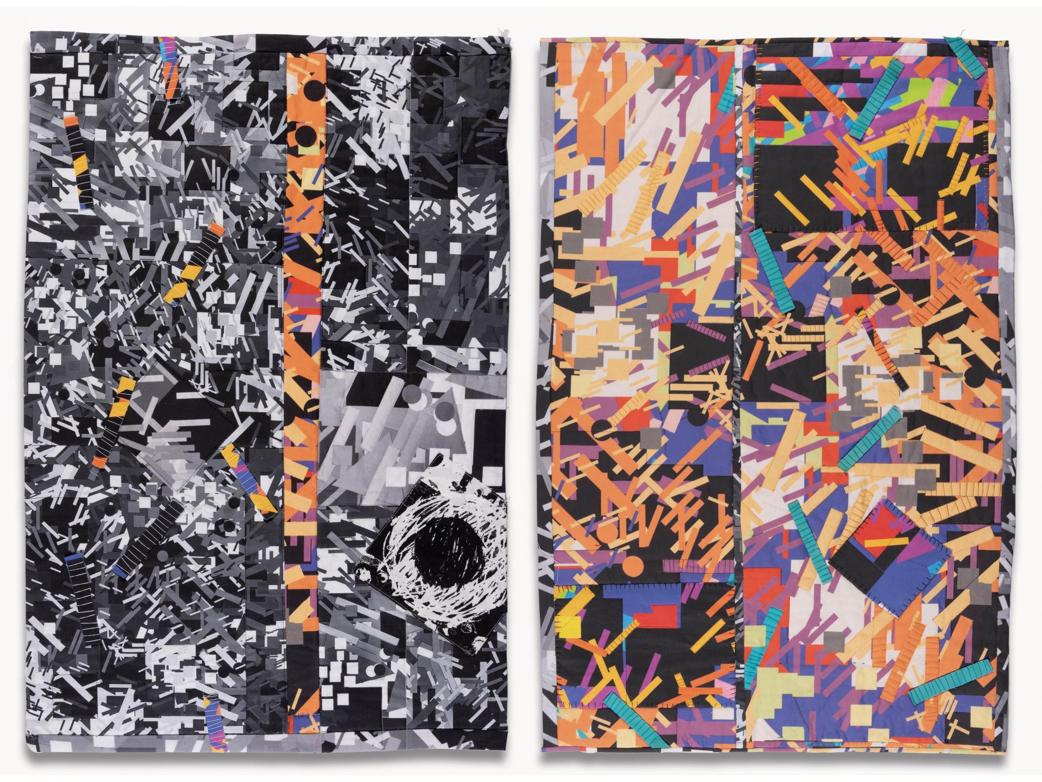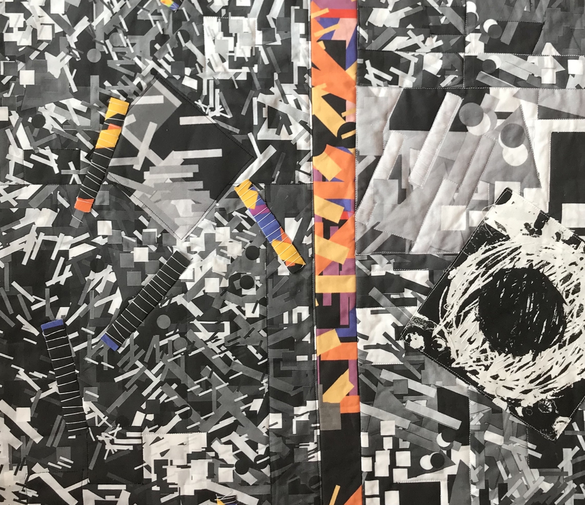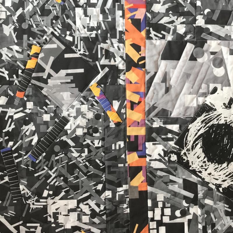 Fused, pieced, raw-edge appliqué.original fabrics designed on the iPad and commercially printed, free motion quilting, machine and hand stitch.