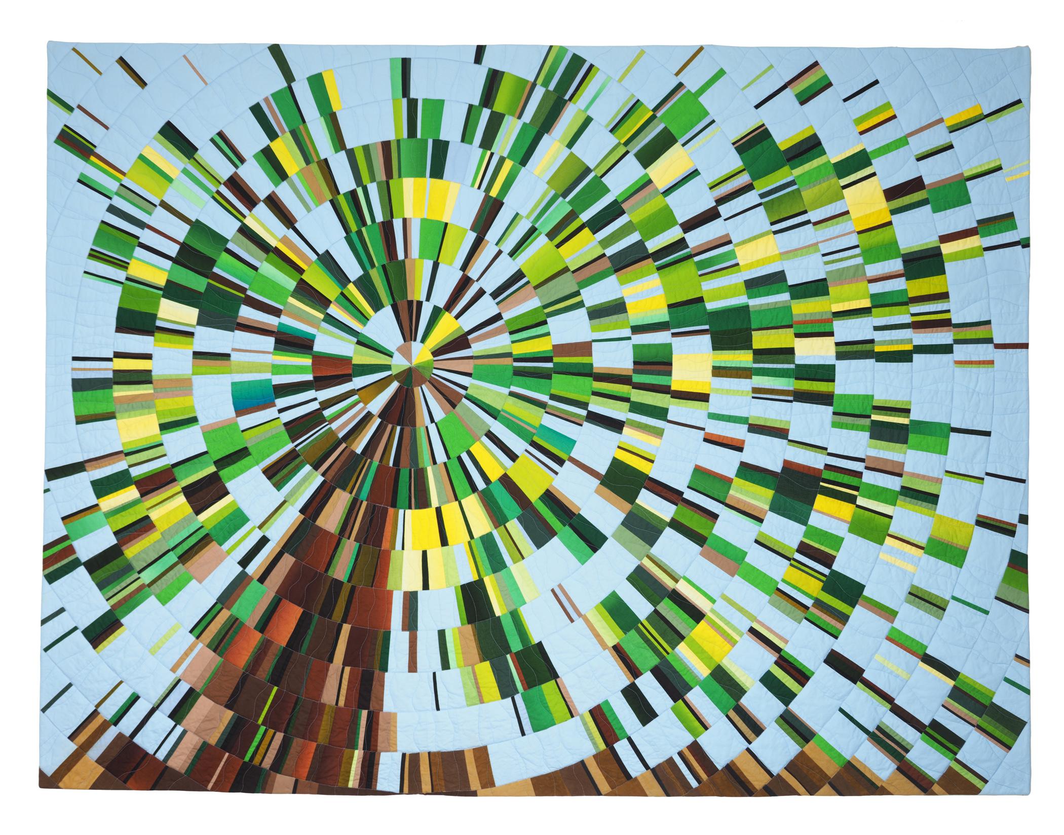 Tree rings offer us a unique historical view of our essential ecosystems; a window to variations in Earth's past climate. As you look at my abstracted tree, I encourage you to pause to think about how mankind's devastating impact on our planet will be recorded in the future. In Apocalyptic Planet, Craig Childs says, "The ancient mosaic of different habitats that interacted with one another in the original climax forest is gone, replaced with a tangled mess that may require hundreds, even thousands of years to rise back to true diversity."