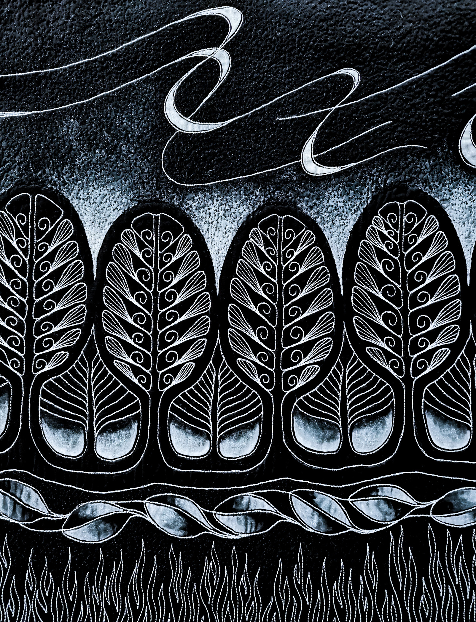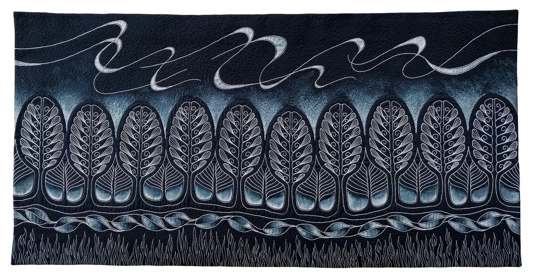 Lines of trees bordering fields, protecting, delineating, uniform in their appearance, often gracing the horizon line. In the cold of winter the ghostly lines of bare branches of deciduous trees against the dark of night create a lace like impression back lit by the dying rays of the sun.