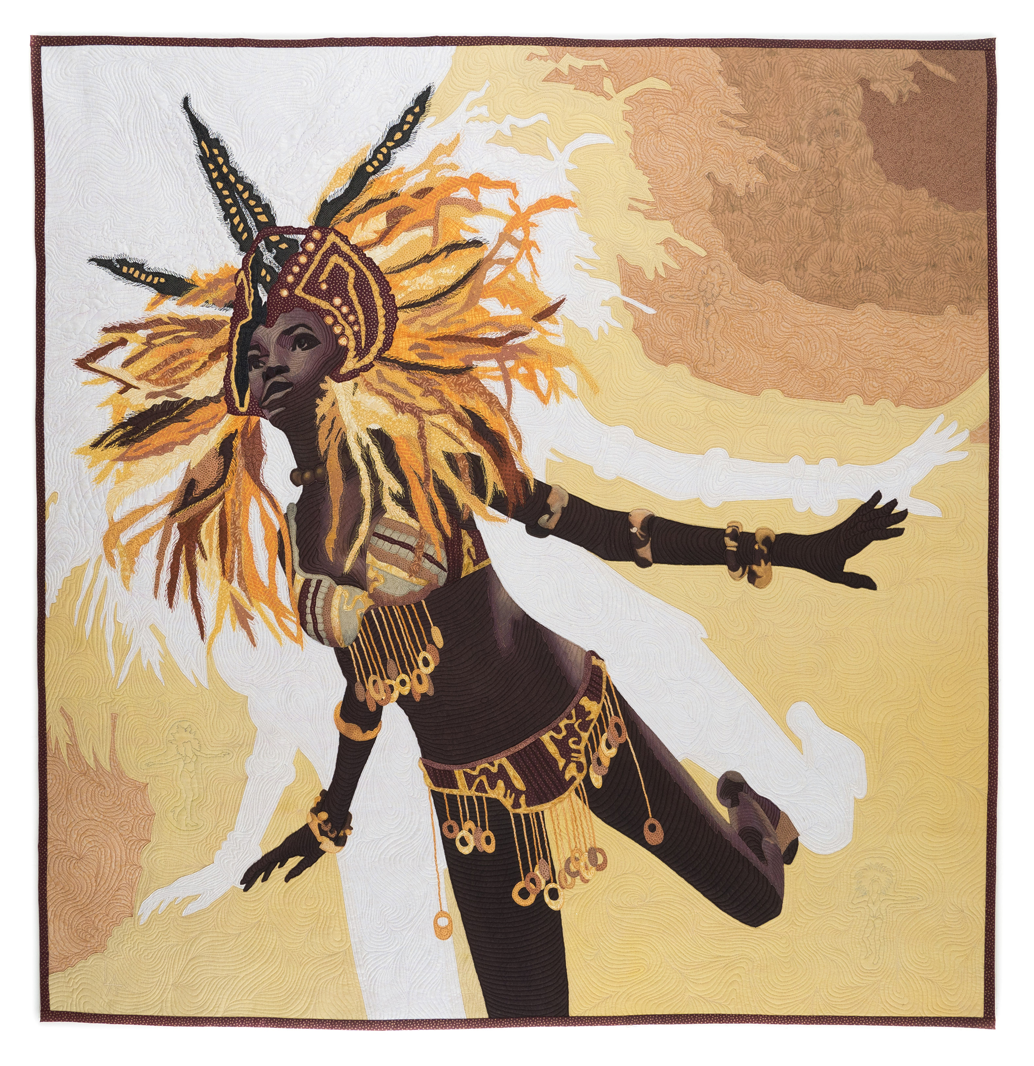 hand painted fabrics, raw edge applique, machine-stitched, machine-quilted.
