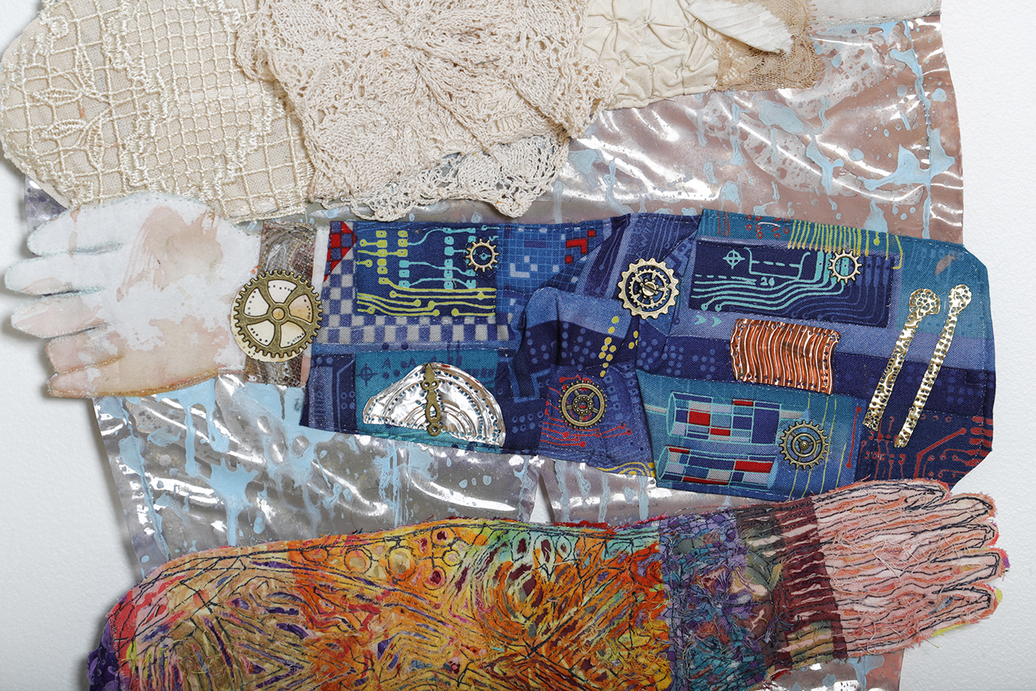 We are going through difficult times, Covid and most recently, the war in Ukraine where I have relatives. This work is about the emotion of being able to find your family and loved ones safe and sound. Each arm is made with a different technique and materials. They represent a specific person, often with a wink. And the cat of course.