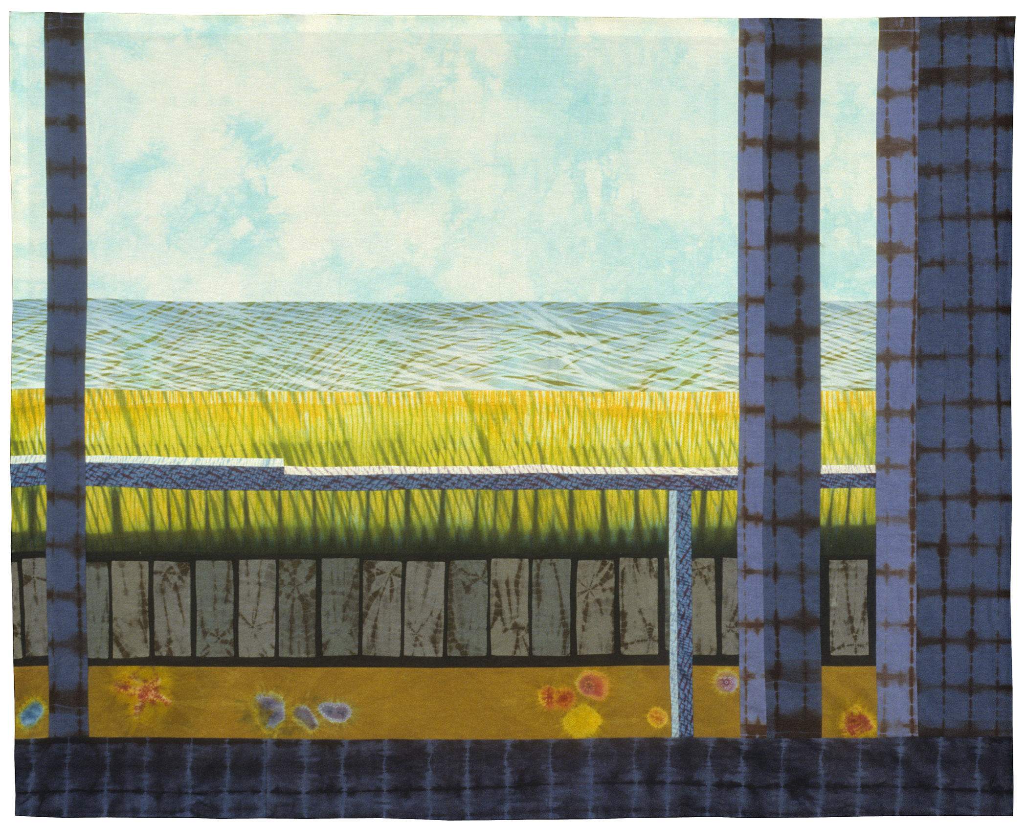 Shibori's organic patterns led me to creating Truro, my first true landscape quilt, as I followed a friend's advice to quit cutting my shibori up into little pieces. It captures a special moment, a fragile landscape and summer memories of sky, water, beach grass, boardwalk, sand and shells. It was, and continues to be, exciting to combine and add to the centuries old traditions of shibori and quilting�East & West.
