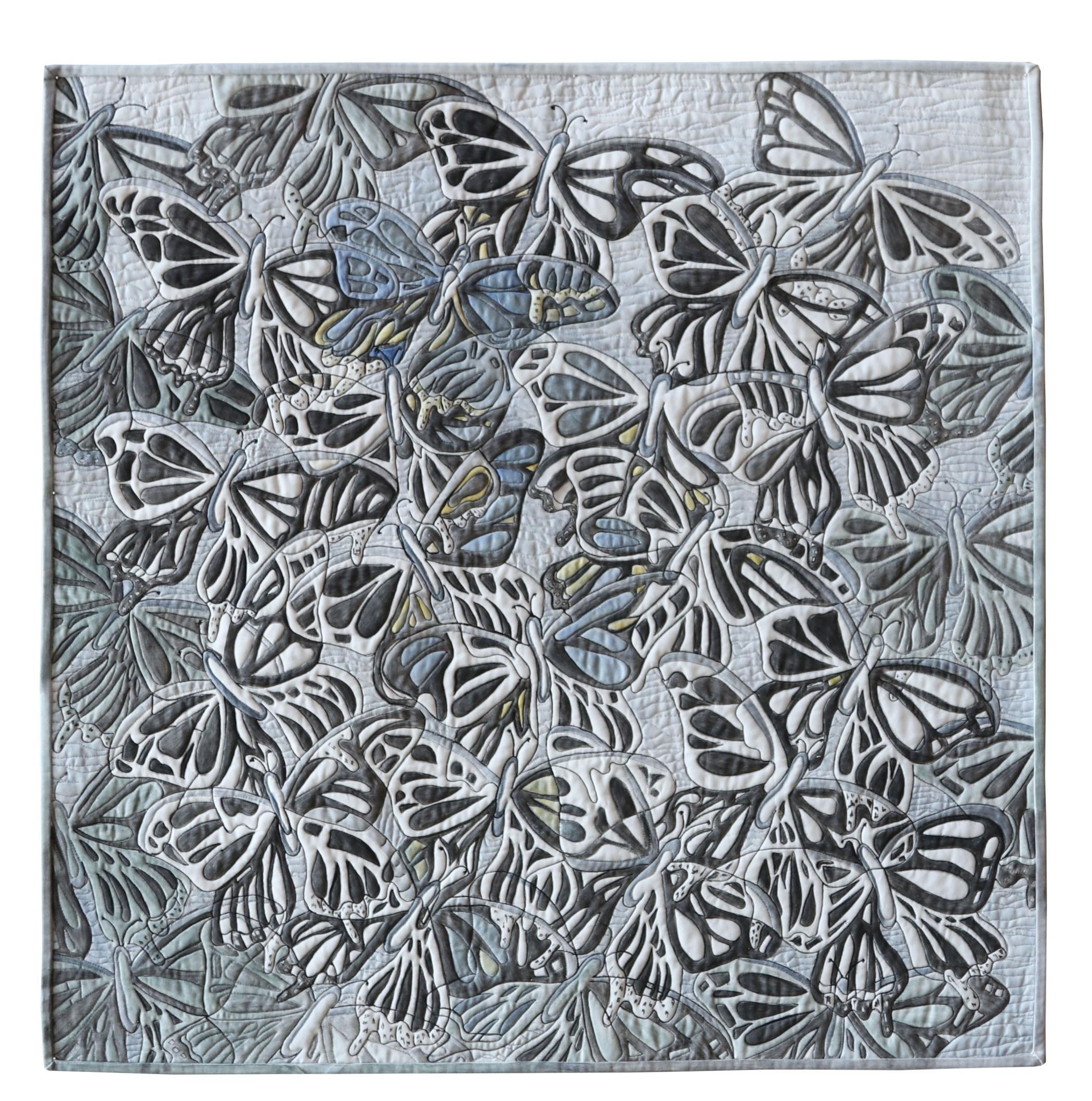 Twilight. Colors fade and appear as black and white as the butterflies rise to the sky. The patchwork on the wings camouflages the butterflies into their surroundings. Markings of light and dark color make it hard for predators to identify their prey. Some butterflies fly in large groups, blending them together as one.