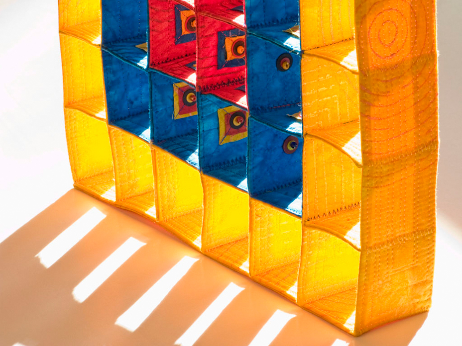 I employ traditional techniques to create innovative, dimensional "quilted" works. By definition these sculptural, fabric constructions are "quilts" - layers of fabric held together by stitches with the addition of light and shadow to transform the value and viewer's perspective.