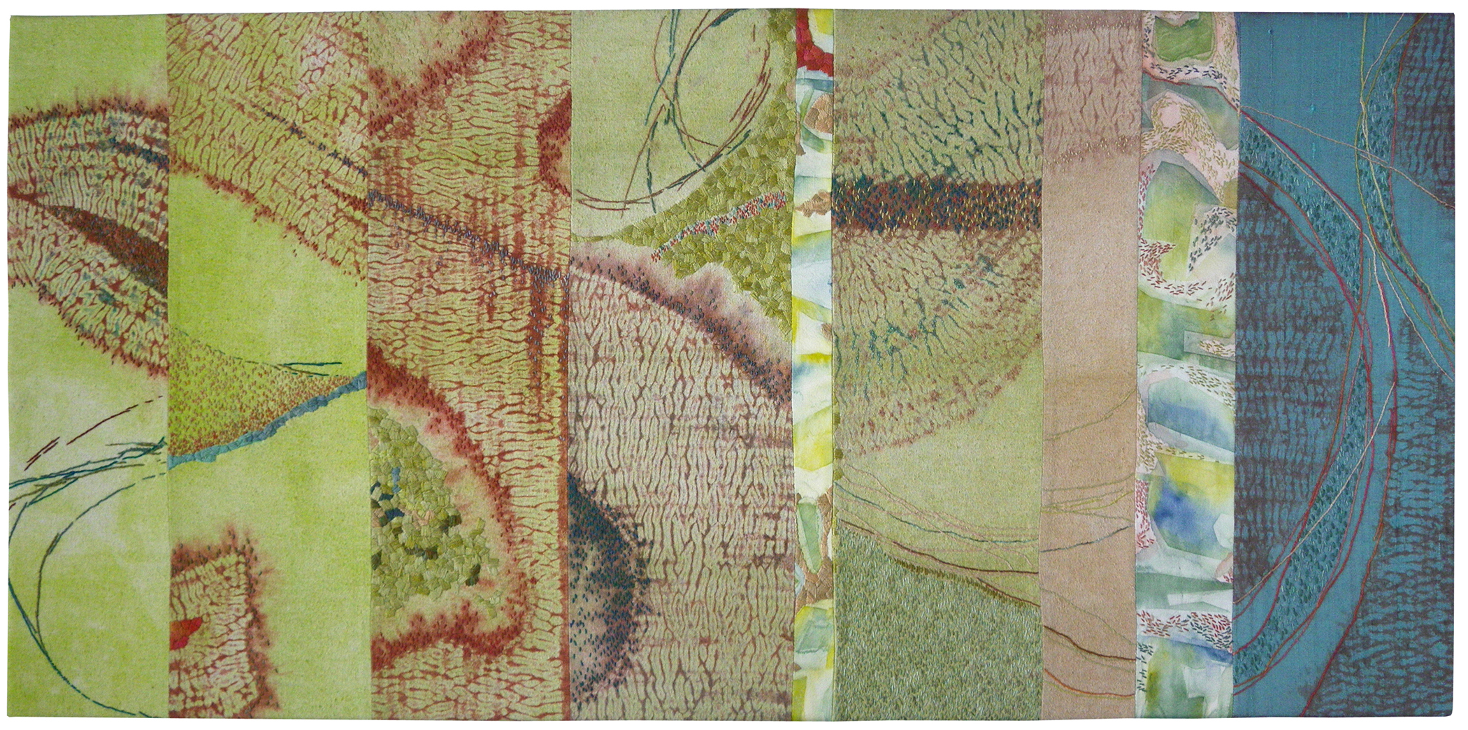 Hand-dyed; Stitched-resist dyed; Painted; Machine pieced; Hand stitched